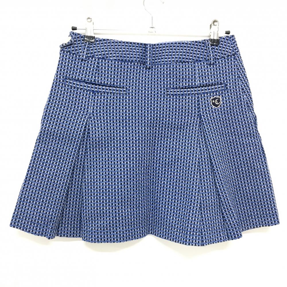 【超美品】キャロウェイ スカート ブルー×ダークネイビー×グレー系 総柄 ボックスプリーツ レディース L ゴルフウェア Callaway