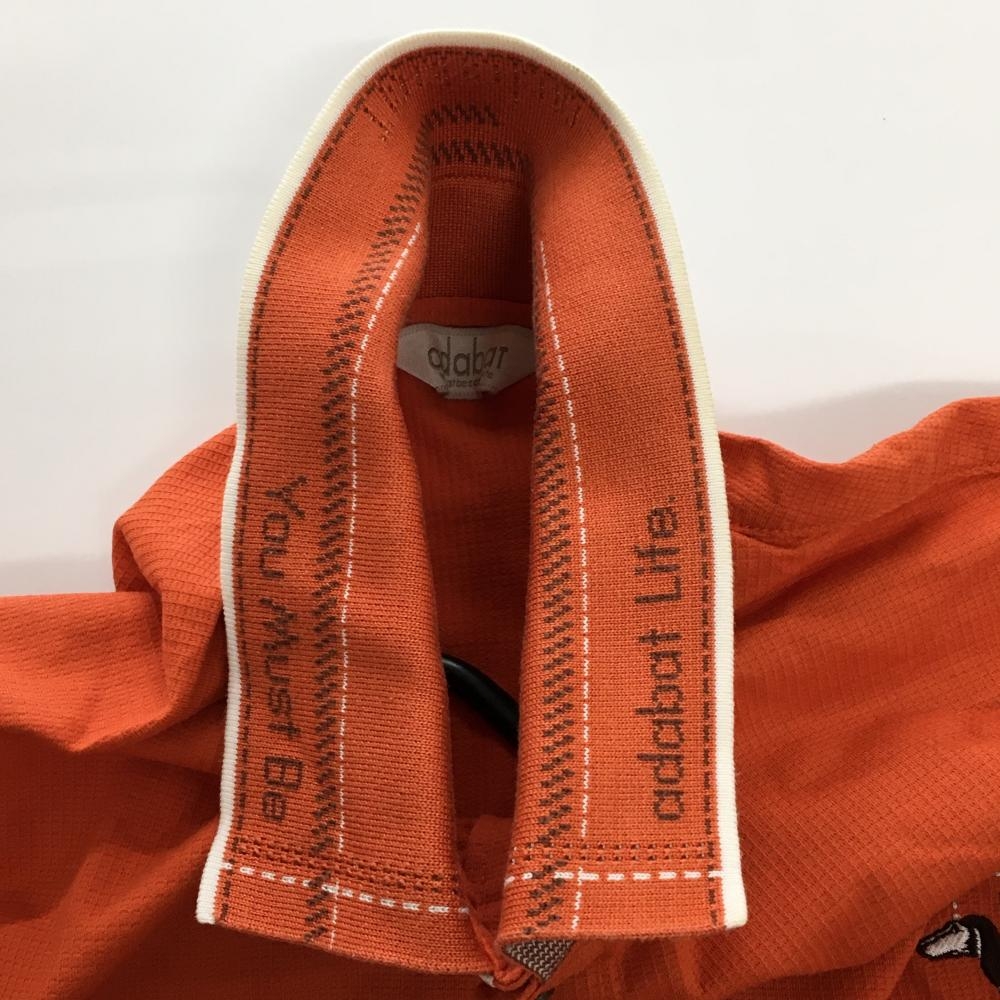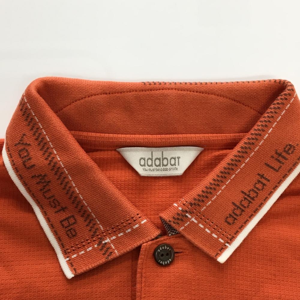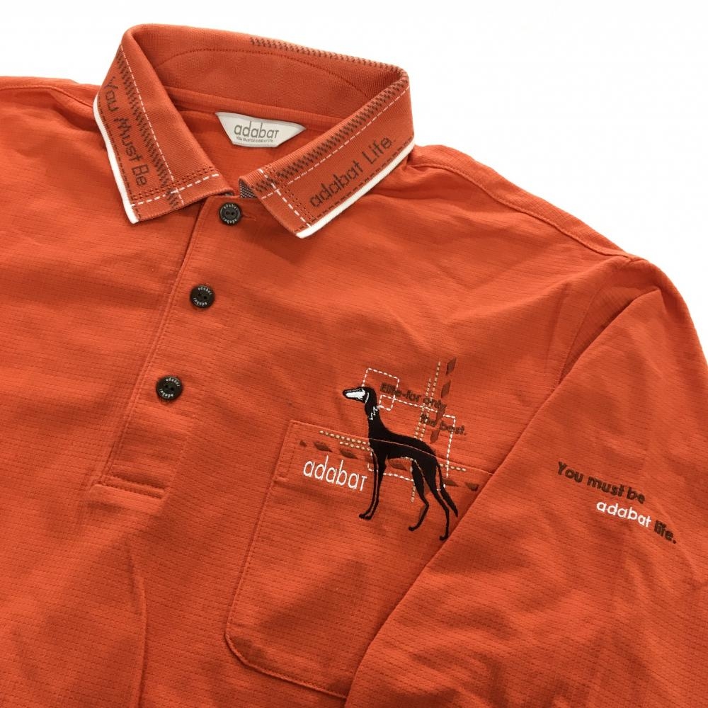 【美品】アダバット 長袖ポロシャツ オレンジ×白 胸ポケット ロゴ刺しゅう メンズ 48(L) ゴルフウェア adabat
