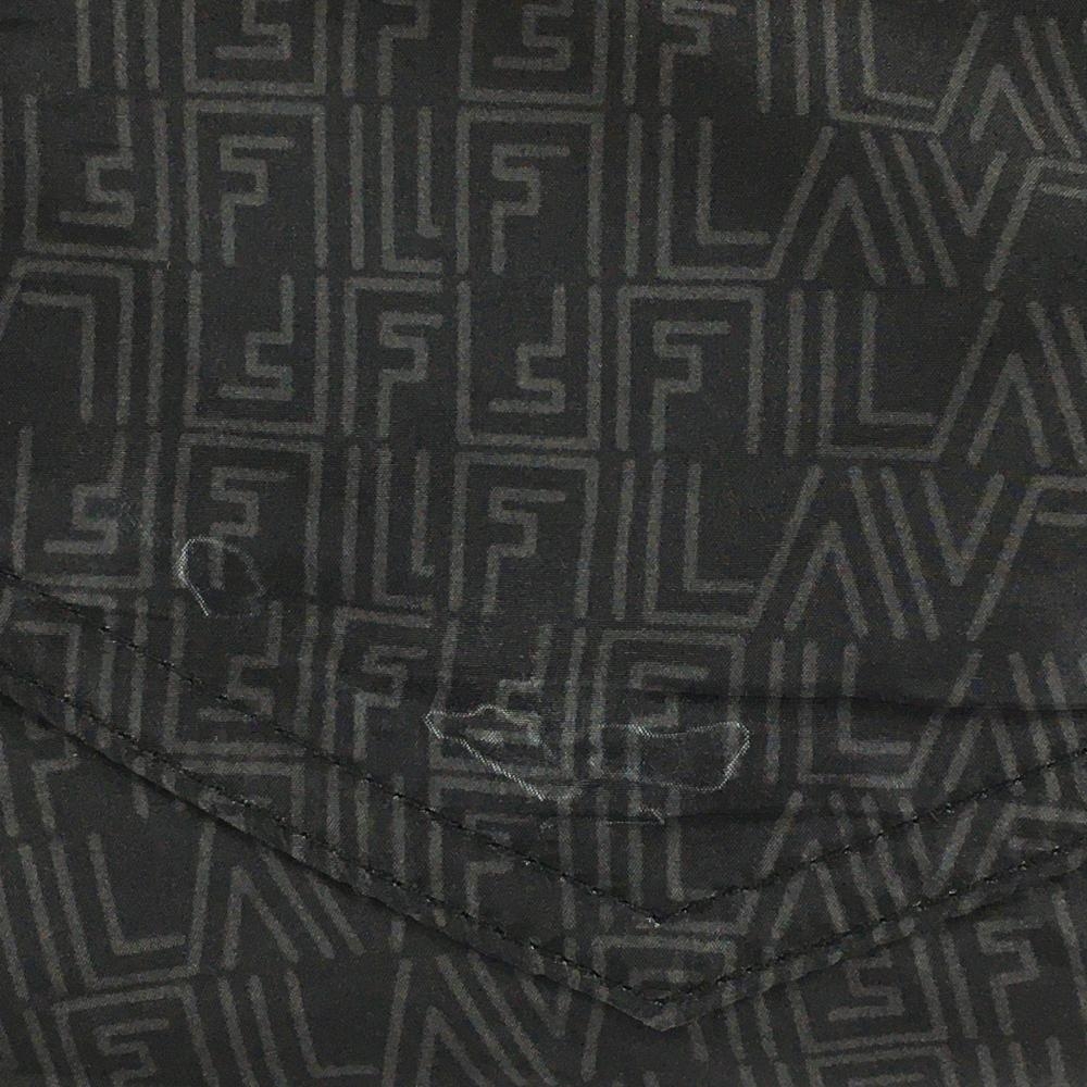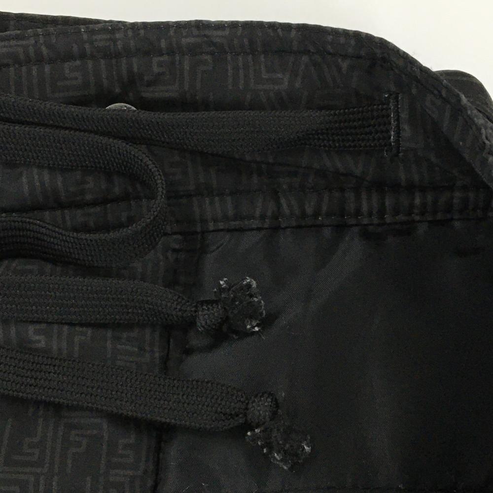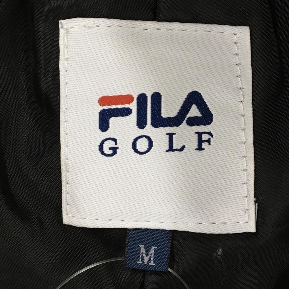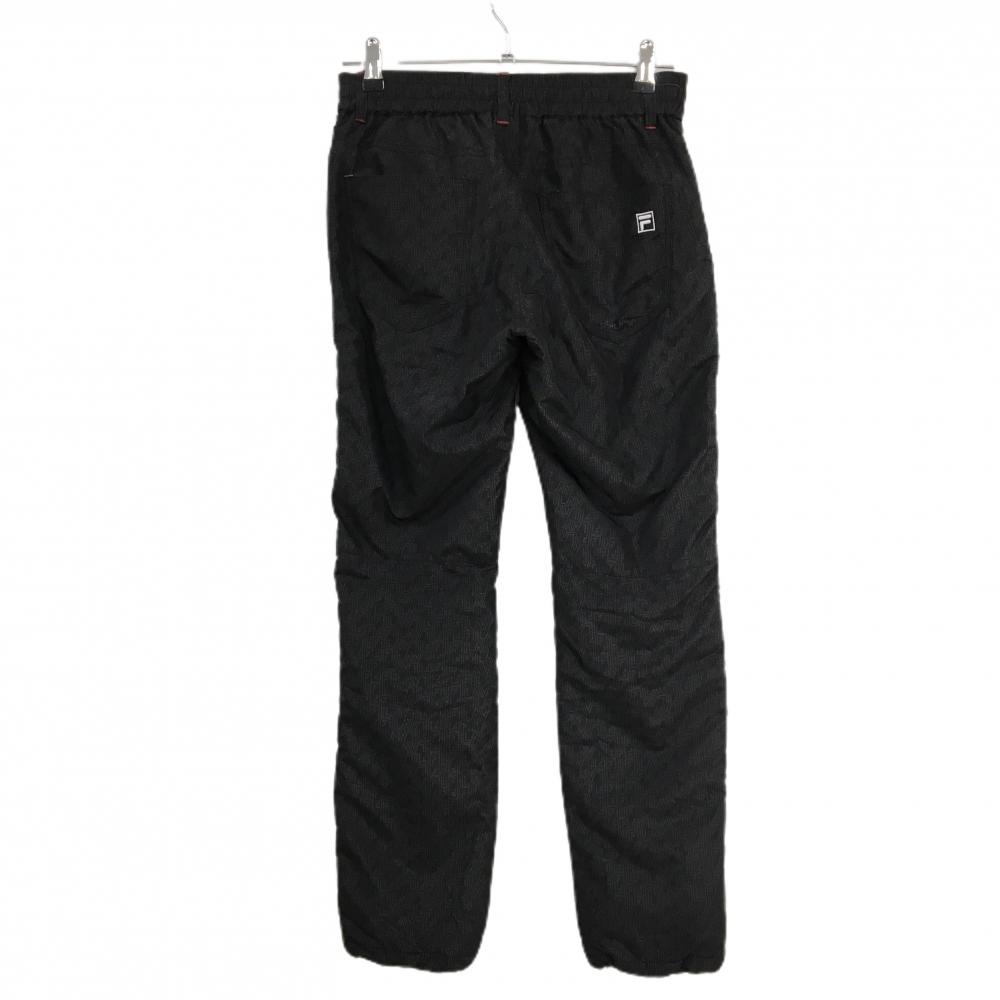 【美品】フィラゴルフ 中綿パンツ 黒×グレー ロゴ総柄 裾ドローコード レディース M ゴルフウェア FILA GOLF