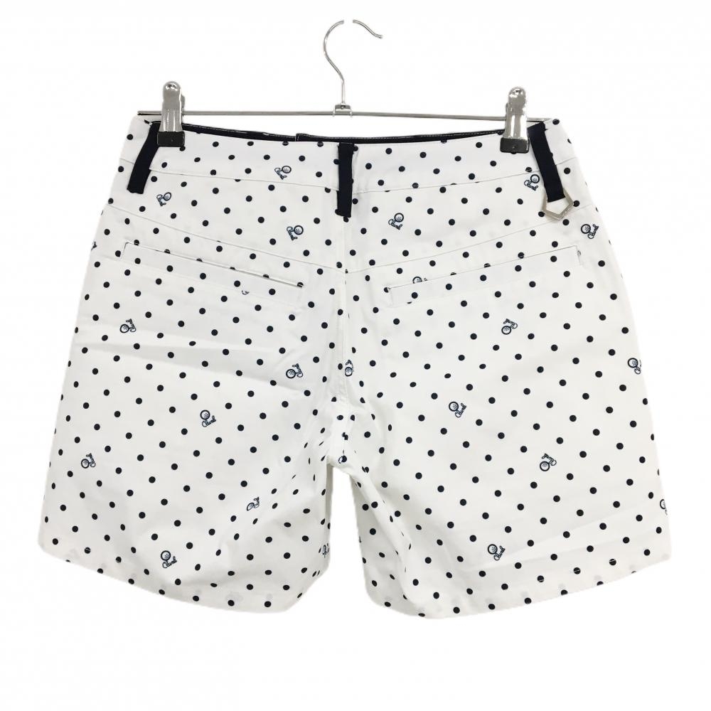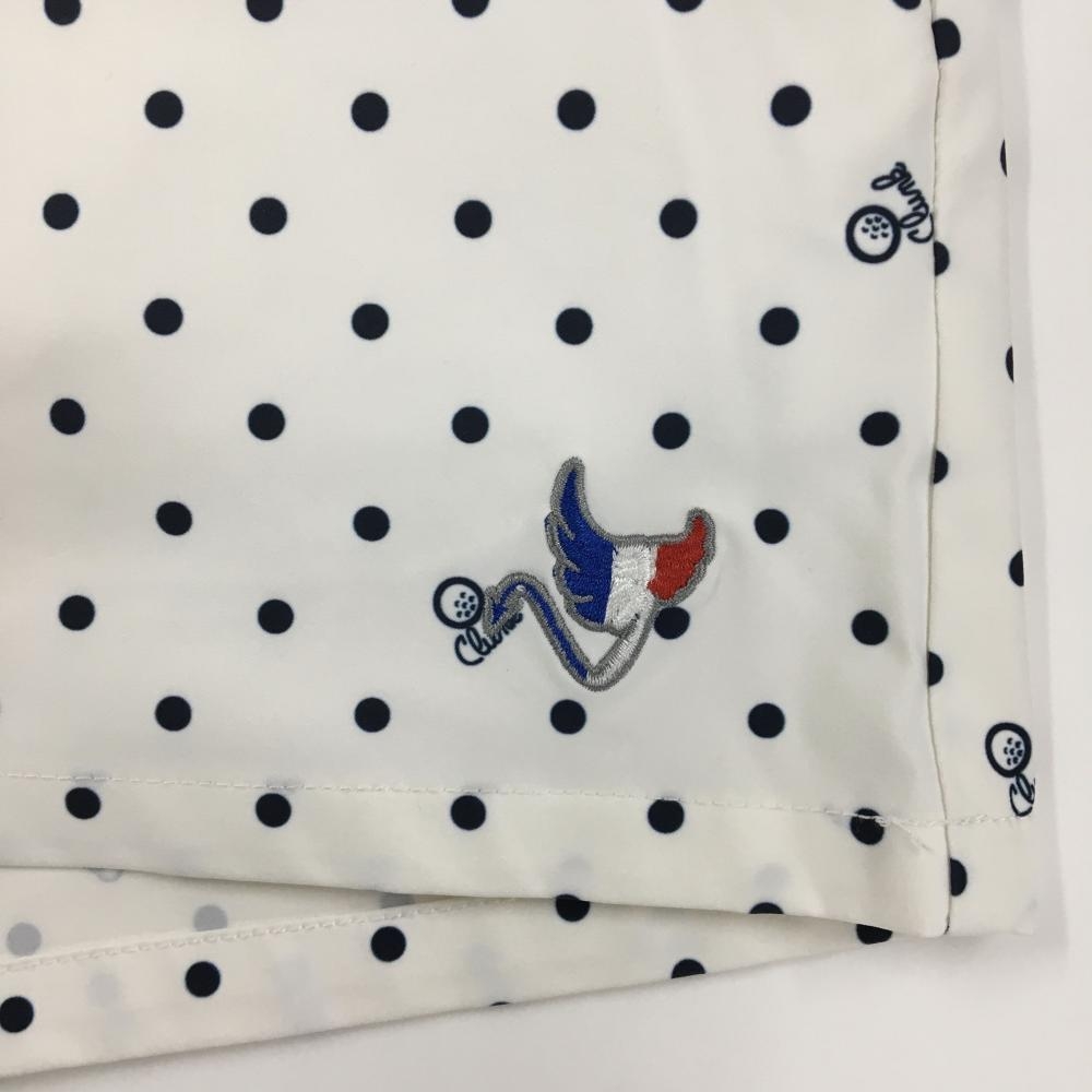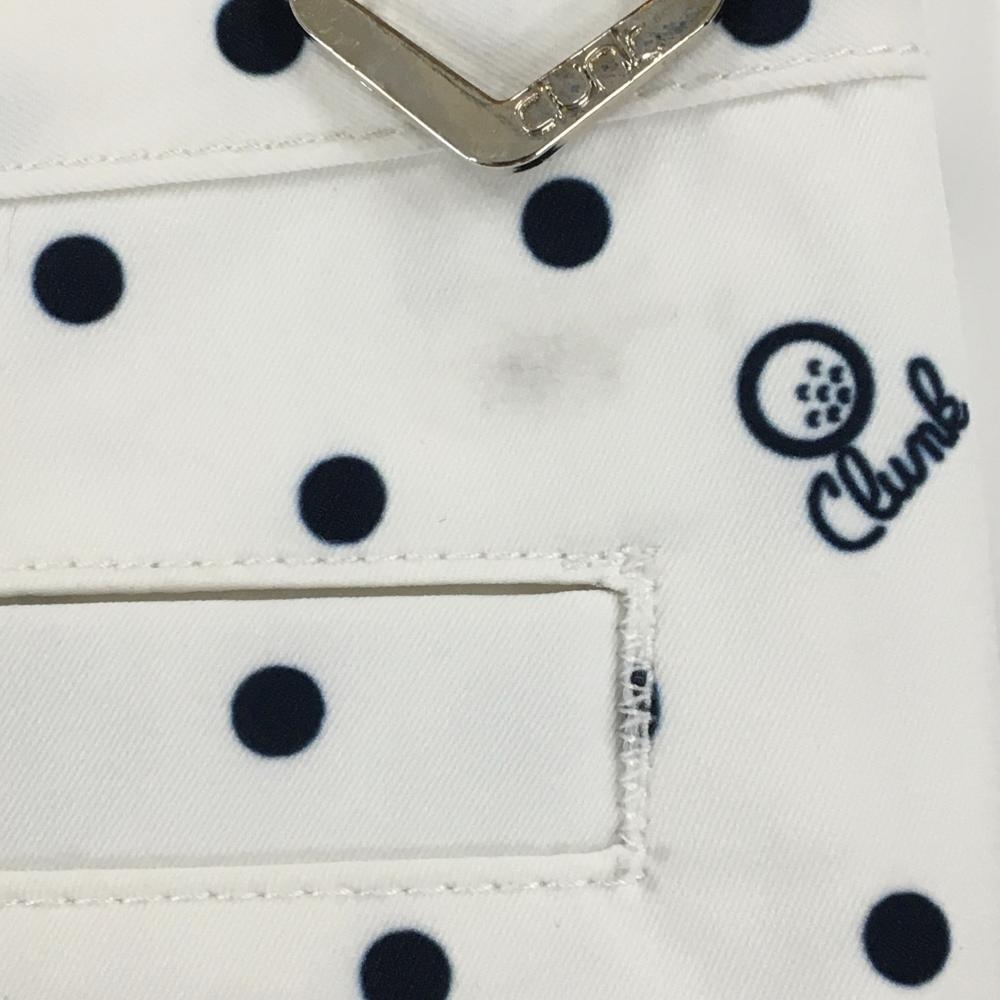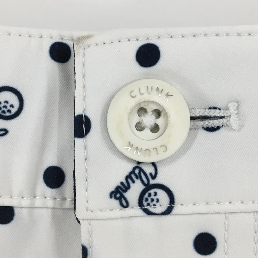 【美品】クランク ハーフパンツ 白×ネイビー ドット柄 ロゴ刺しゅう レディース M ゴルフウェア CLUNK