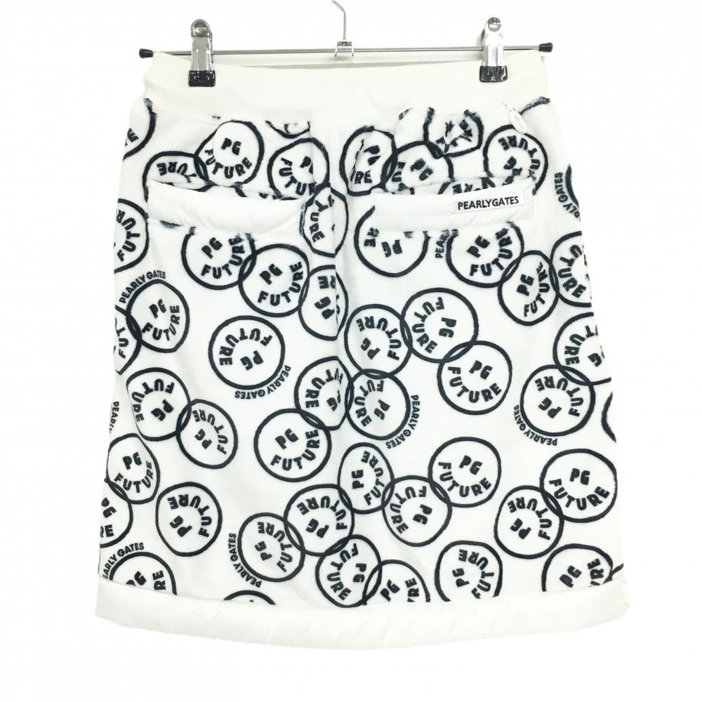 【美品】パーリーゲイツ スカート 白×ネイビー PG FUTUREニコちゃん柄 起毛 レディース 1(M) ゴルフウェア PEARLY GATES