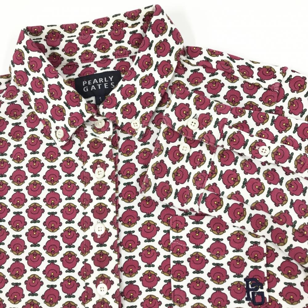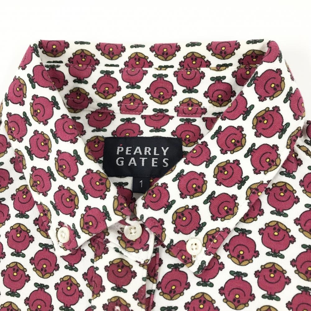 【超美品】パーリーゲイツ 長袖シャツ 白×ボルドー MR.MEN LITTLE MISS レディース 1(M) ゴルフウェア PEARLY GATES