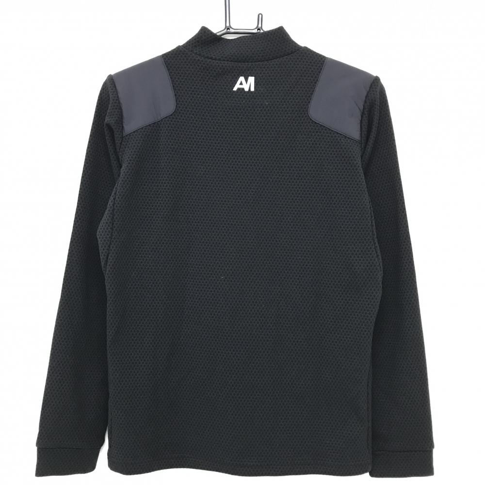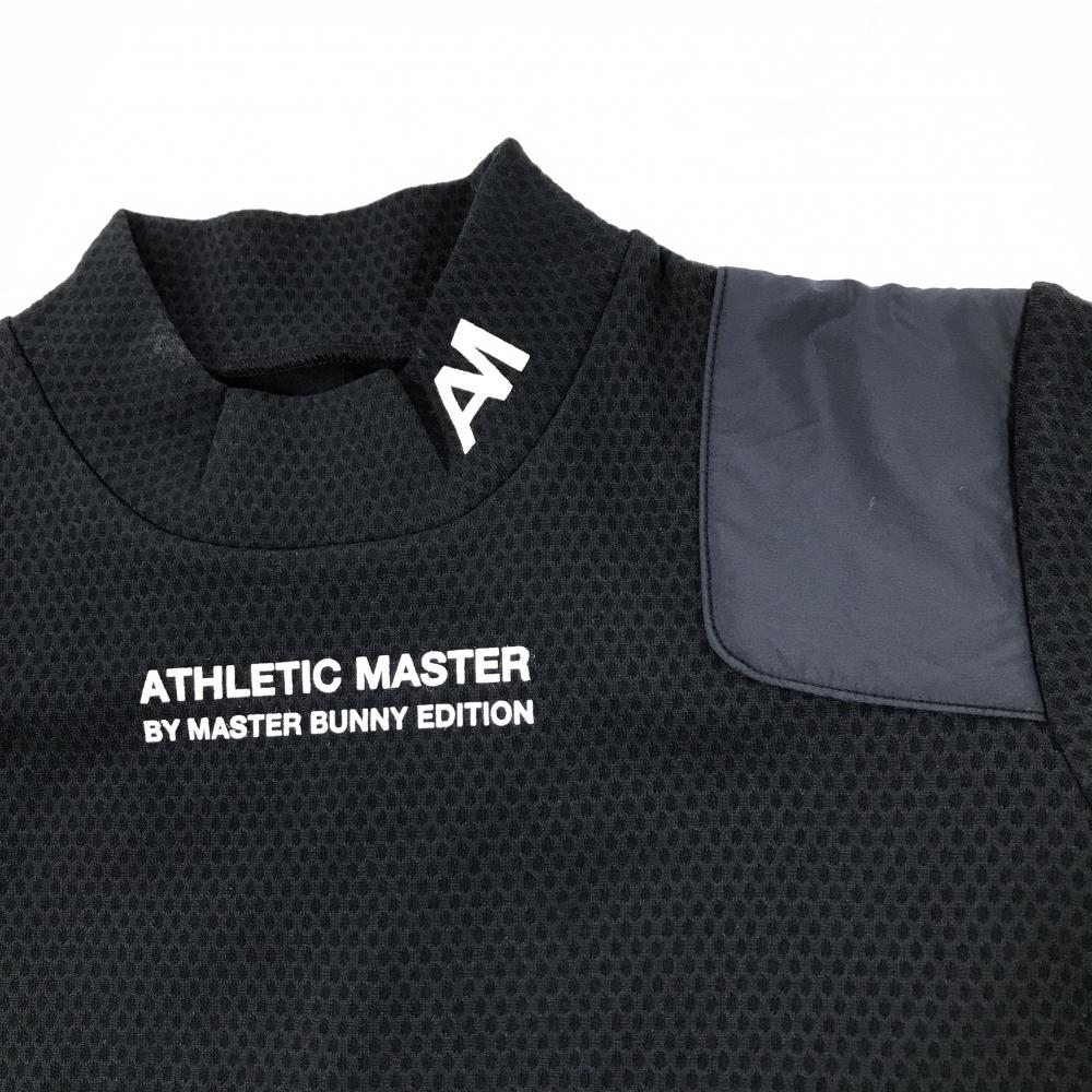 【美品】マスターバニー 長袖ハイネックシャツ 黒 総柄地模様 肩素材 裏起毛 レディース 2(L) ゴルフウェア MASTER BUNNY EDITION