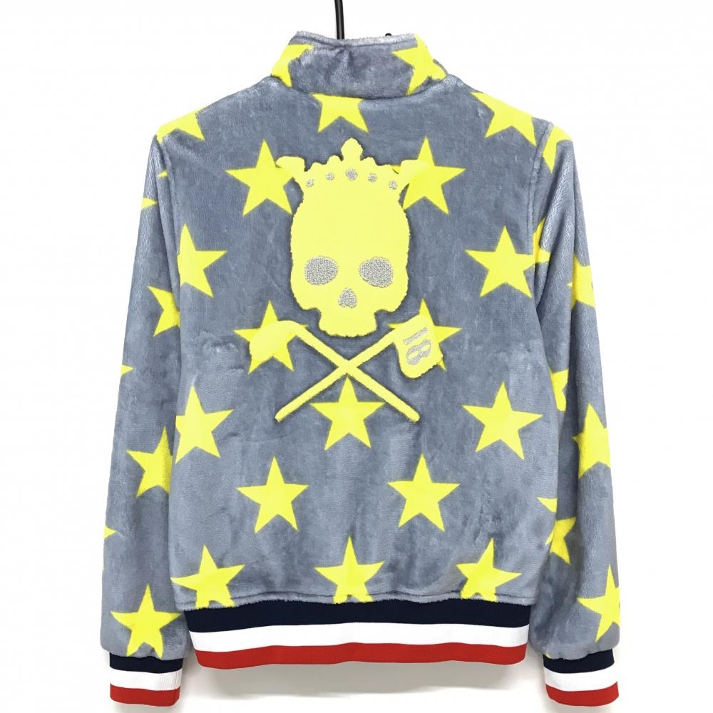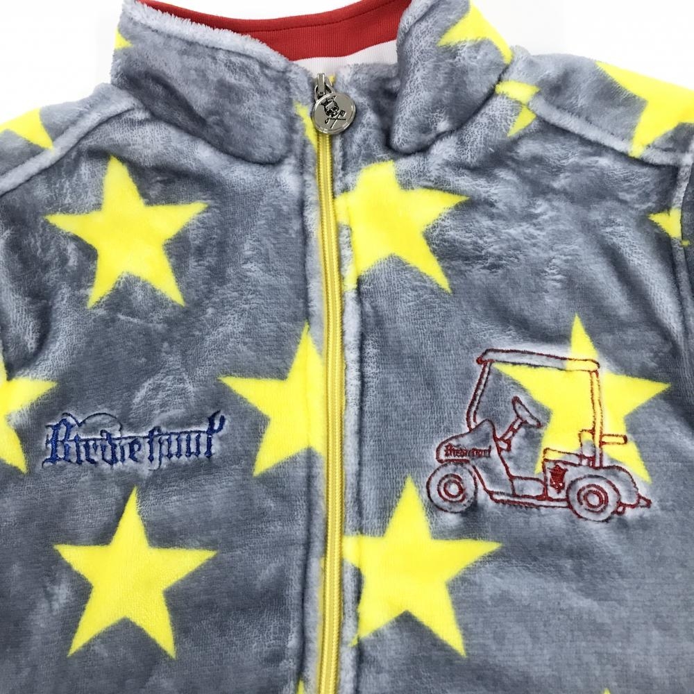 バーディーハント フリースジャケット ブルーグレー×イエロー 星柄 背面スカル ロゴ刺しゅう レディース M ゴルフウェア Birdie hunt