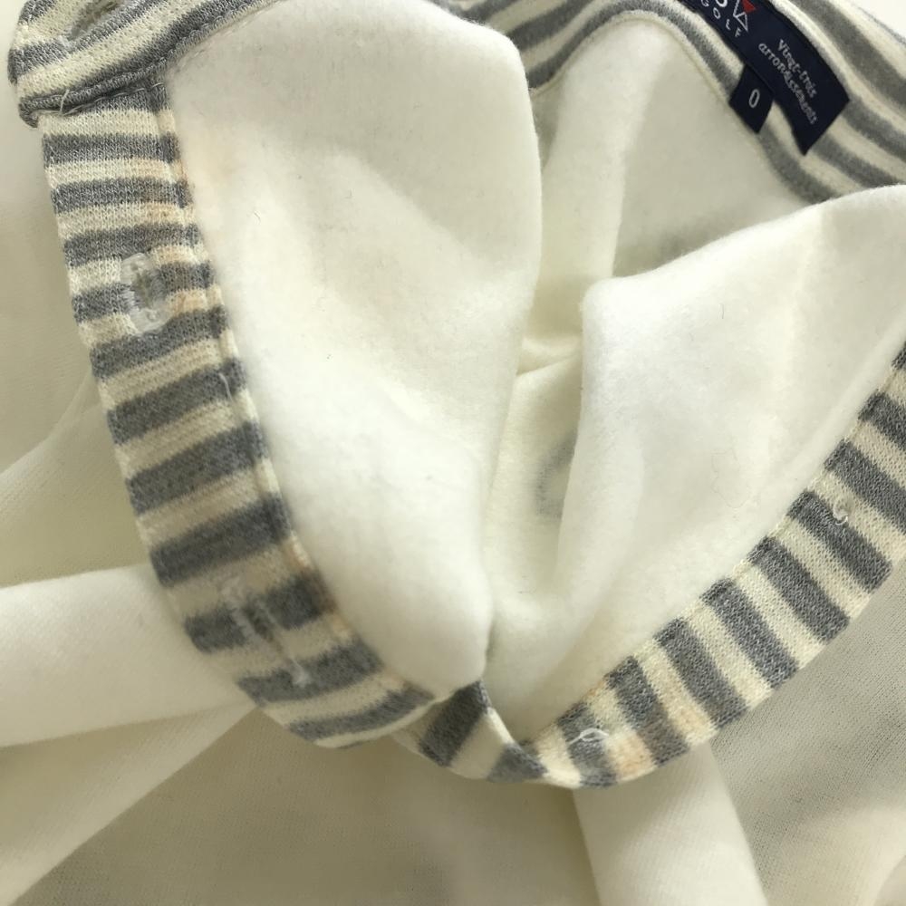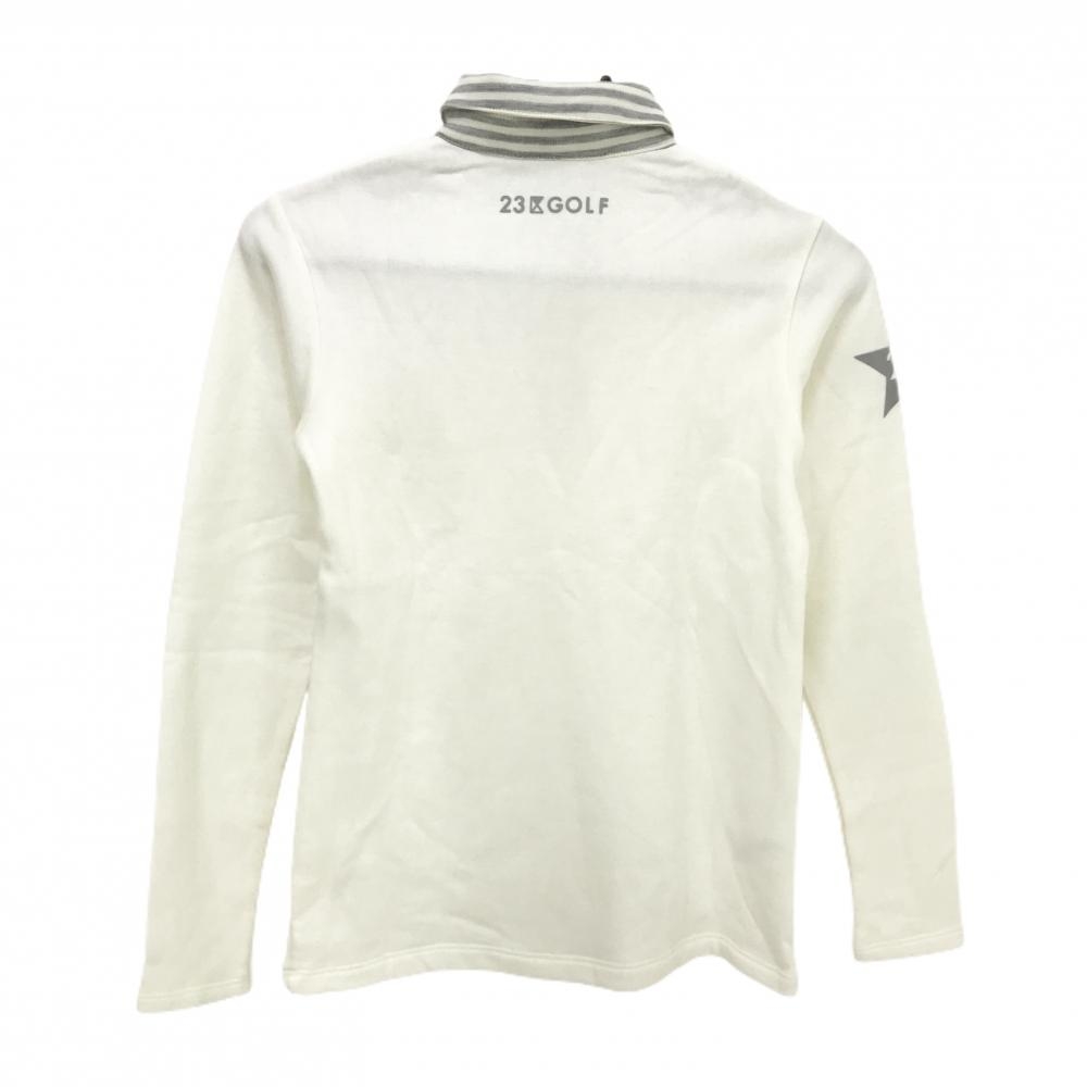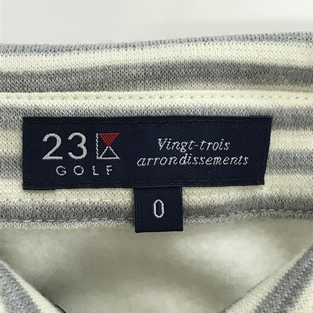 23区ゴルフ 長袖ポロシャツ 白×グレー 裏起毛 襟ボーダー レディース 0(S) ゴルフウェア 23区