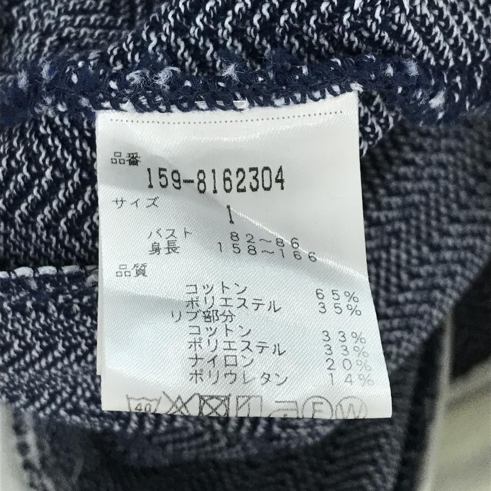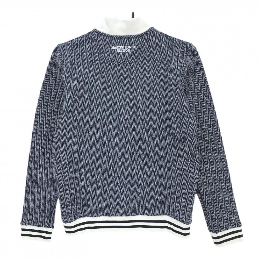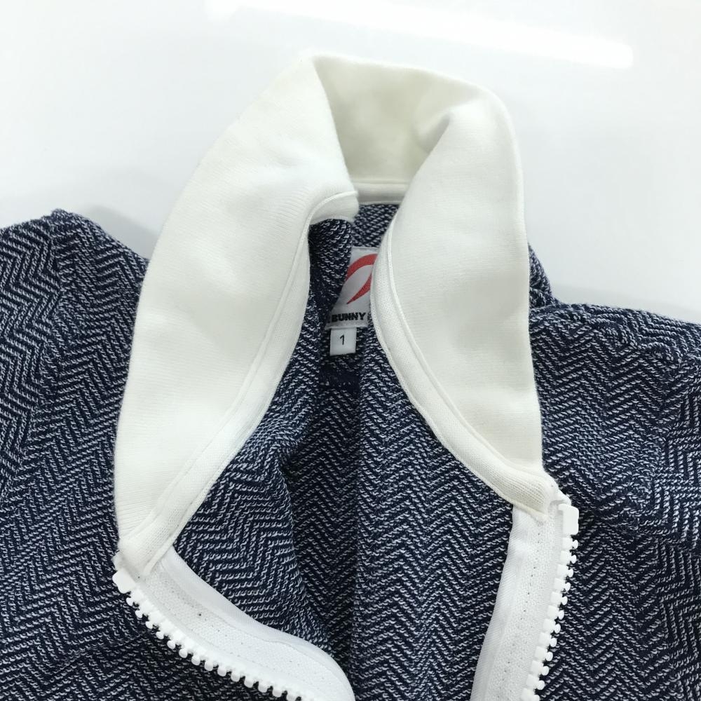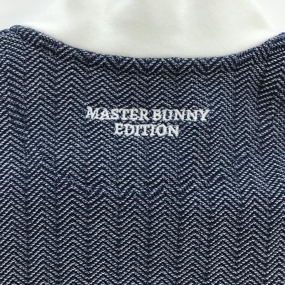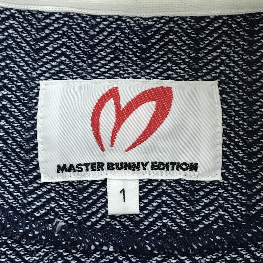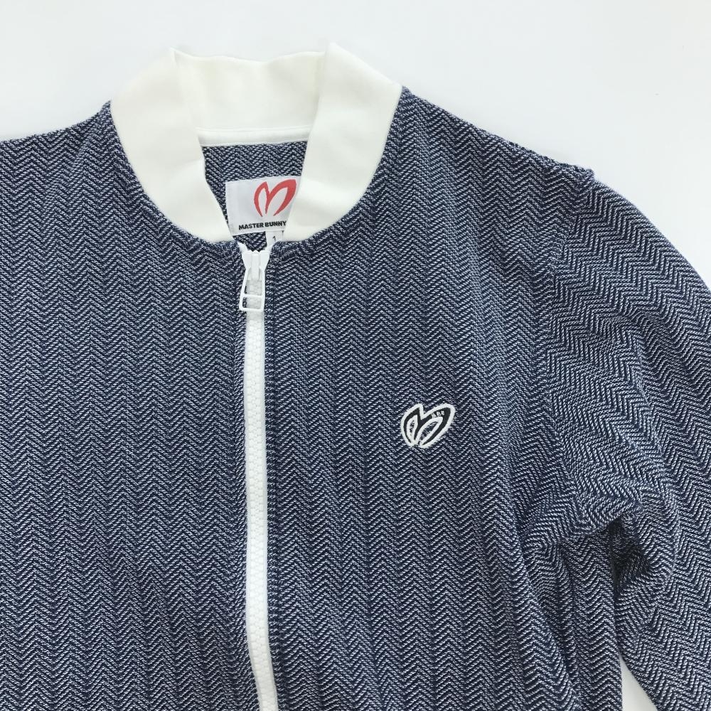 【美品】マスターバニー ニットジャケット ネイビー×白 ヘリンボーン レディース 1(M) ゴルフウェア MASTER BUNNY EDITION