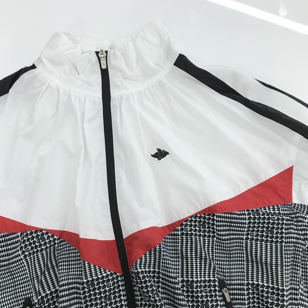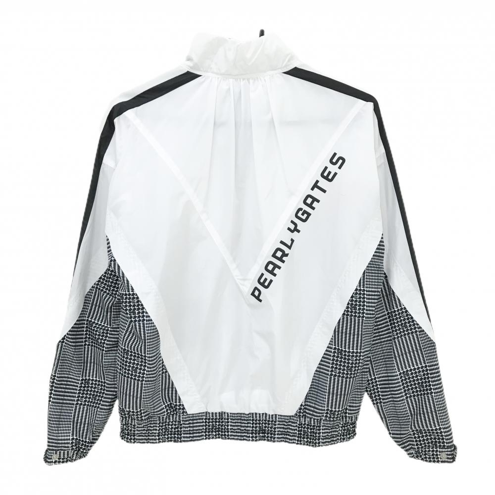 【超美品】パーリーゲイツ ジャケットブルゾン 白×黒 下部グレンチェック風 韓国モデル レディース 0(S) ゴルフウェア PEARLY GATES