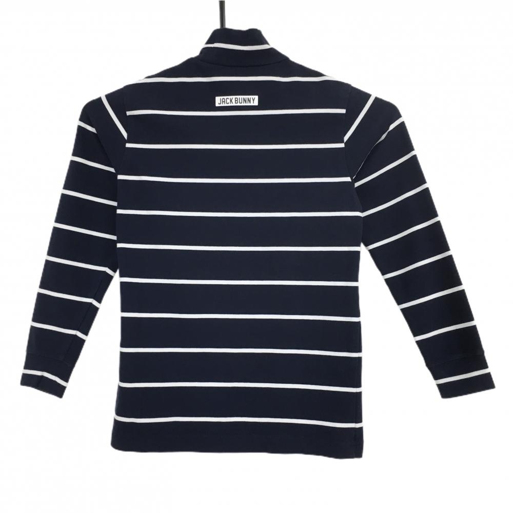 【美品】ジャックバニー 長袖ハイネックシャツ ネイビー×白 ボーダー ジュニア・キッズ 130(SS) ゴルフウェア Jack Bunny