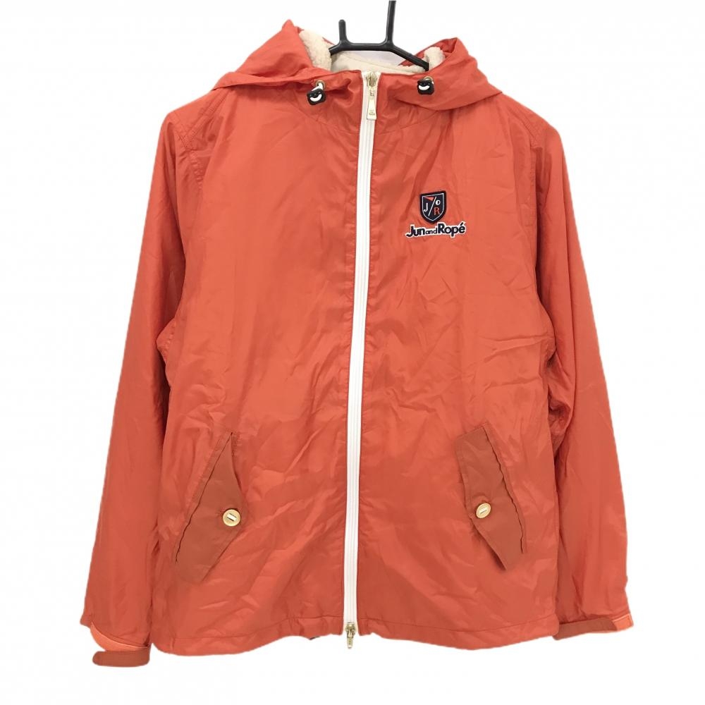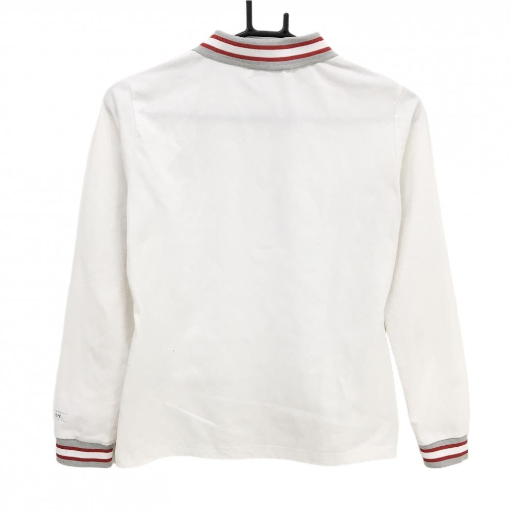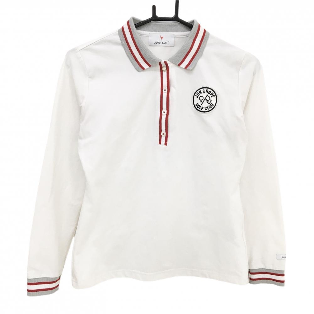 ジュンアンドロペ 長袖ポロシャツ 白×レッド リブライン ワッペン レディース M ゴルフウェア JUN&ROPE