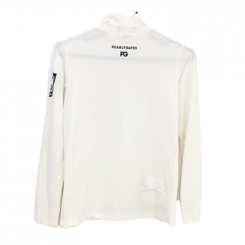 パーリーゲイツ 長袖ハイネックシャツ 白×ネイビー 表微起毛 ハーフジップ レディース 0(S) ゴルフウェア PEARLY GATES