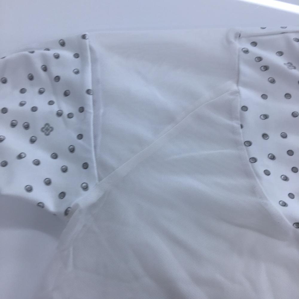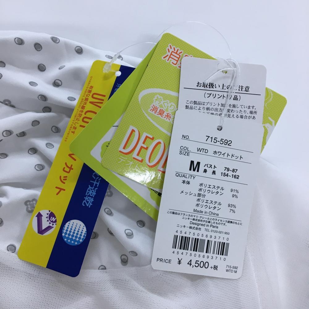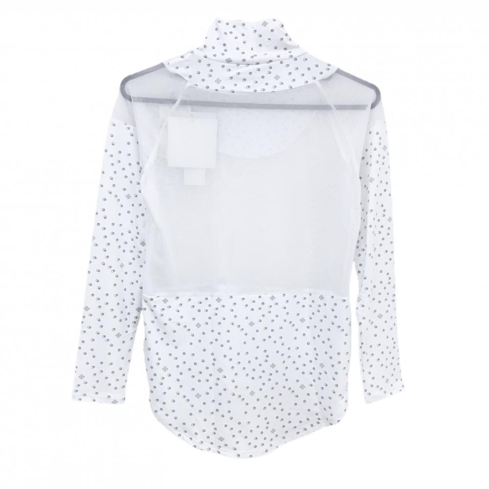 【新品】マリクレールスポール ハイネックインナーシャツ 白×グレー 一部メッシュ ドット調 UV レディース M ゴルフウェア marie claire