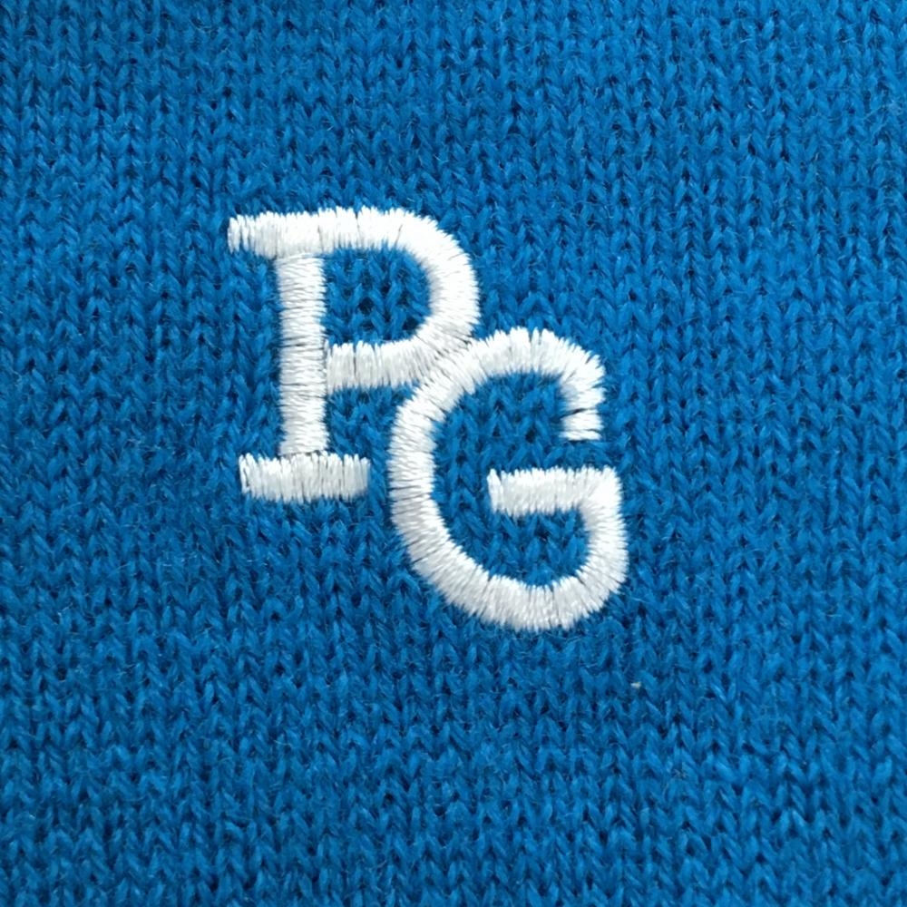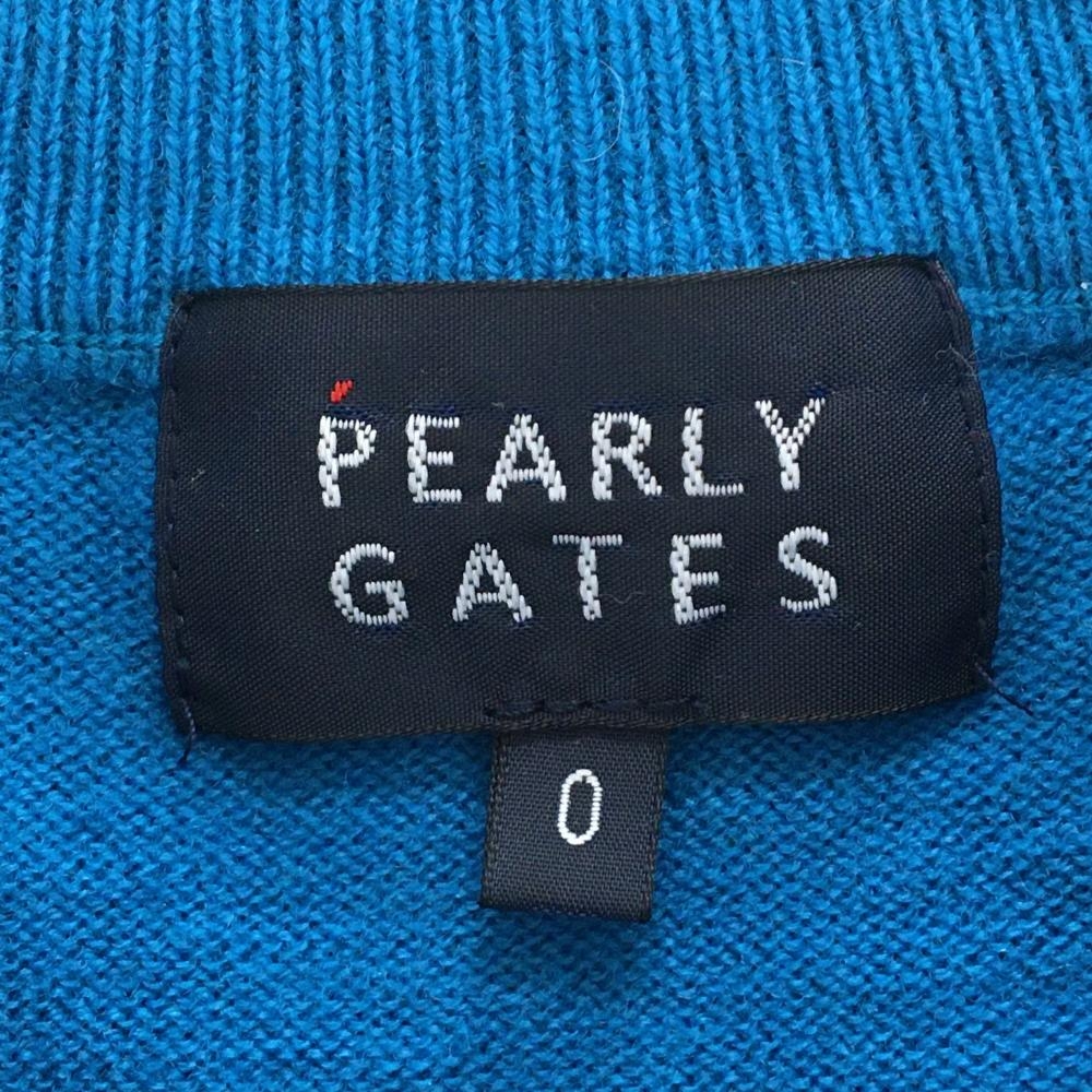 【美品】パーリーゲイツ セーター ブルー×白 裾総柄 ウール100% ニット レディース 0(S) ゴルフウェア PEARLY GATES