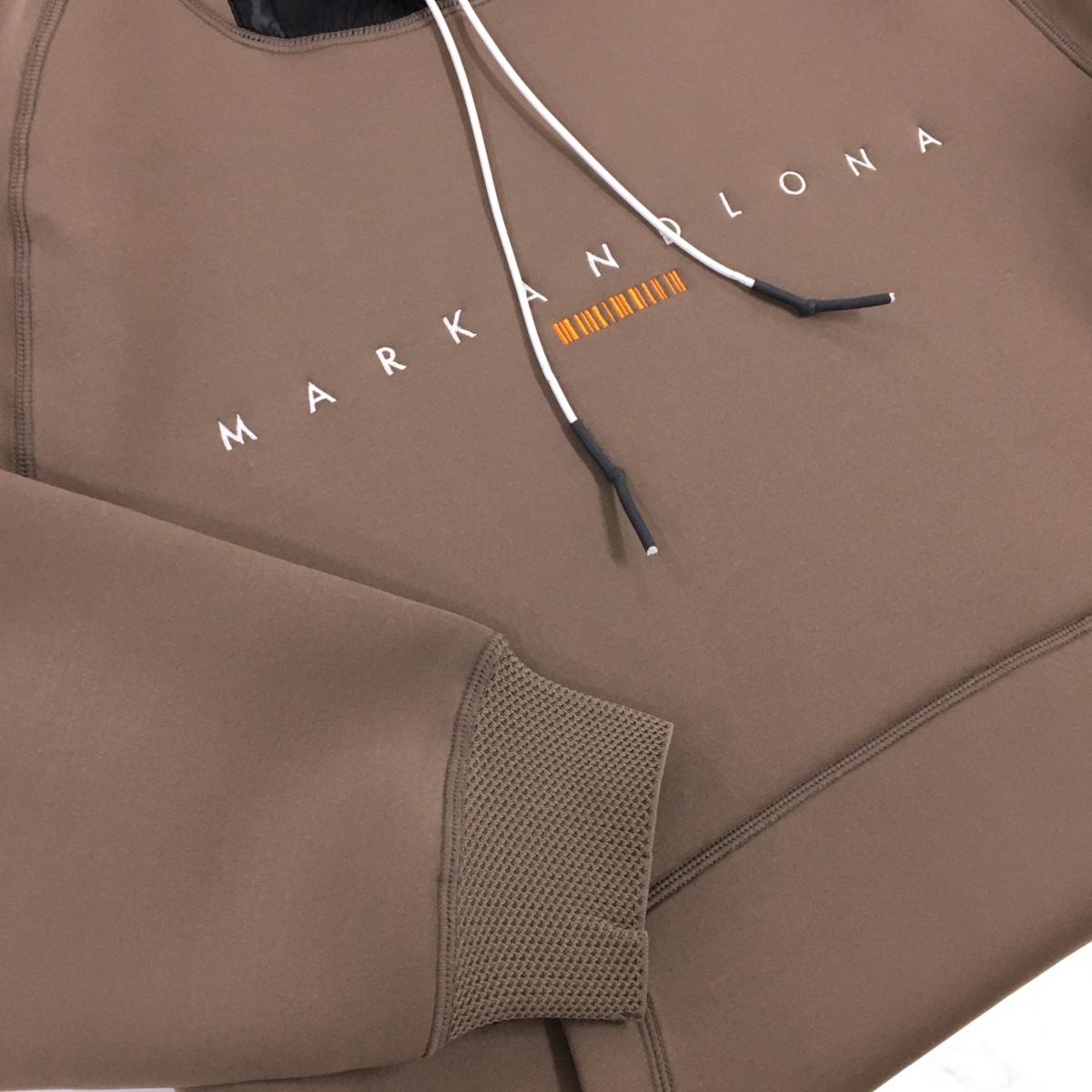 【新品】マークアンドロナ フード付きトレーナー ブラウン×黒 CODE フード異素材 ダンボールニット メンズ 48(L) ゴルフウェア MARK&LONA
