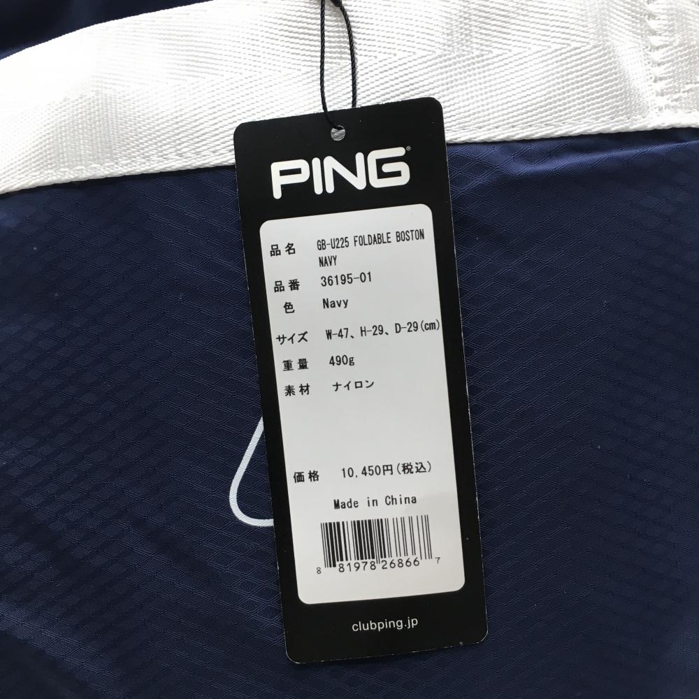 【新品】ピン フォルダブルボストンバッグ ネイビー×白 折り畳み可 ショルダーストラップ付 内外ポケット ゴルフ PING