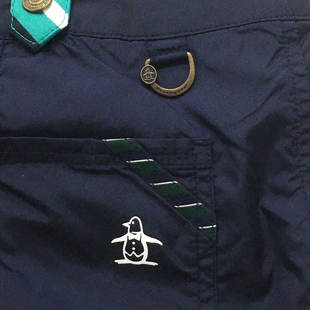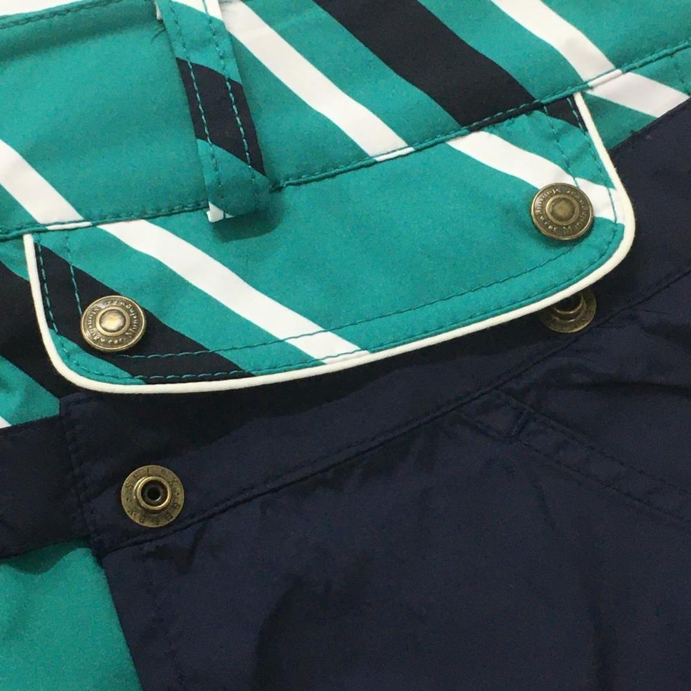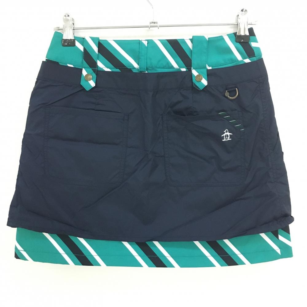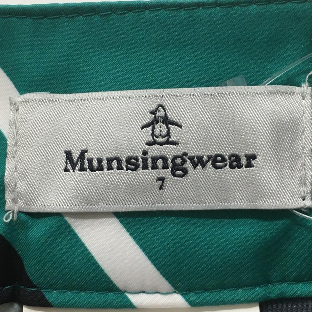 【美品】マンシングウェア 2WAYスカート グリーン×白×ネイビー 斜めストライプ 前面プリーツ レディース 7 ゴルフウェア Munsingwear