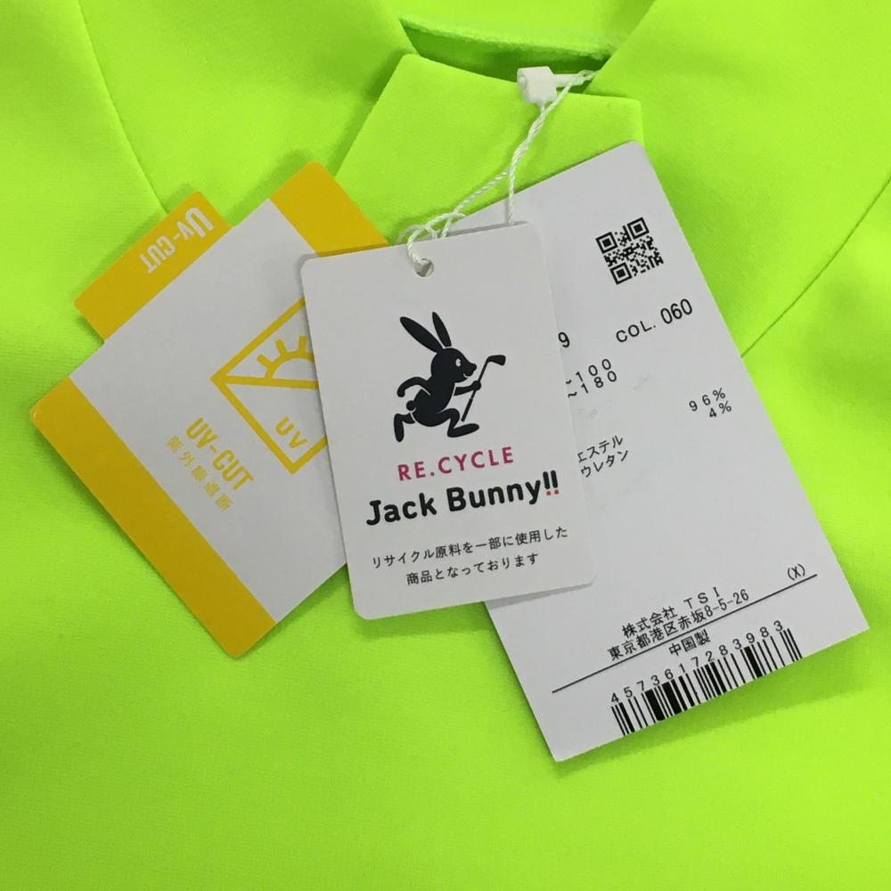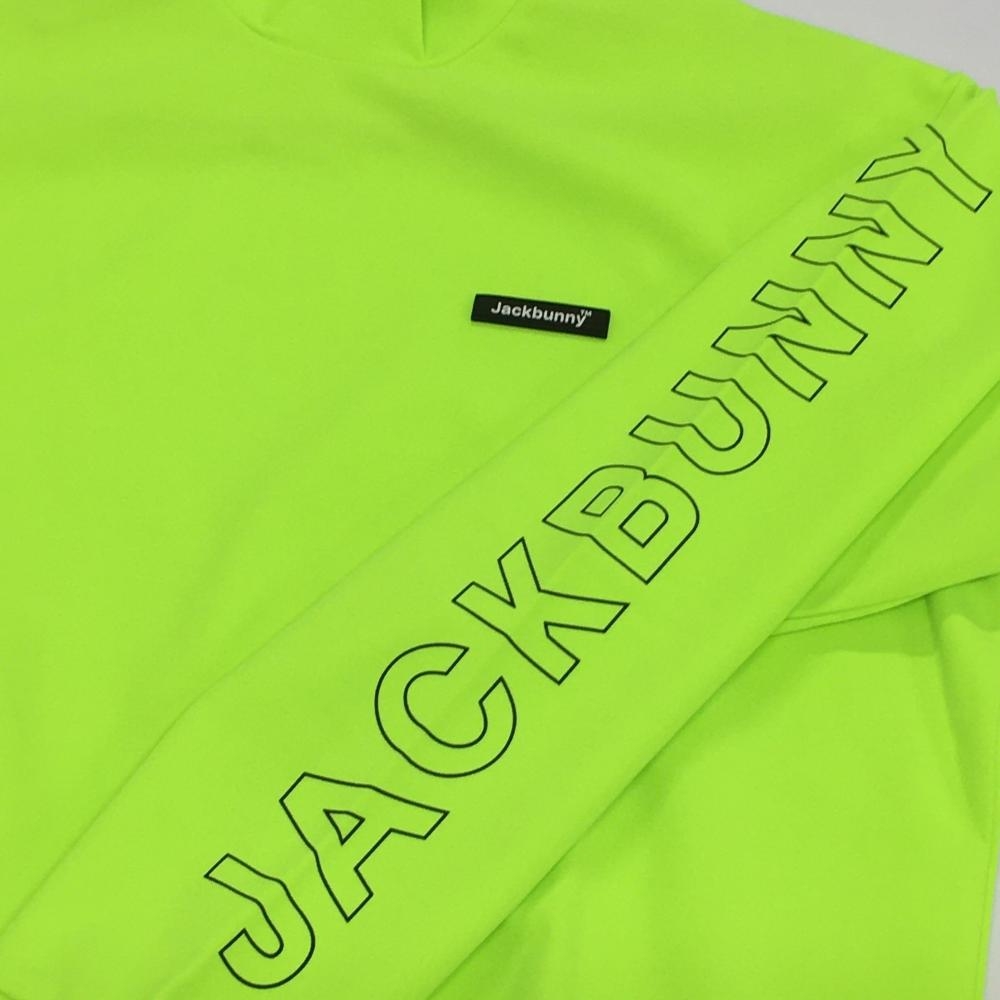 【新品】ジャックバニー 長袖ハイネックシャツ 蛍光グリーン 袖ロゴ ストレッチ メンズ 5(L) ゴルフウェア 2025年モデル Jack Bunny