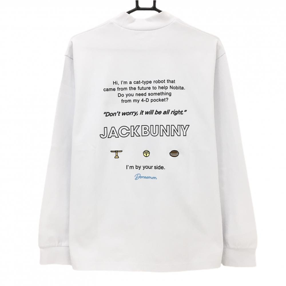【超美品】ジャックバニー×ドラえもん 長袖ハイネックシャツ 白 バックプリント メンズ 5(L) ゴルフウェア 2025年モデル Jack Bunny