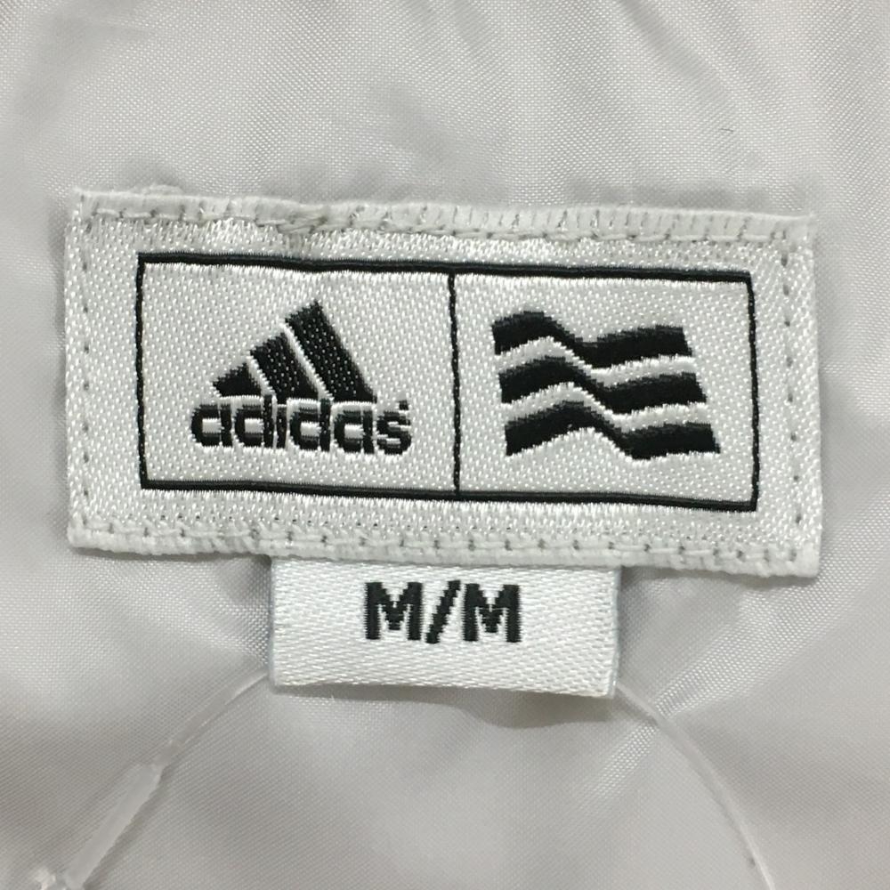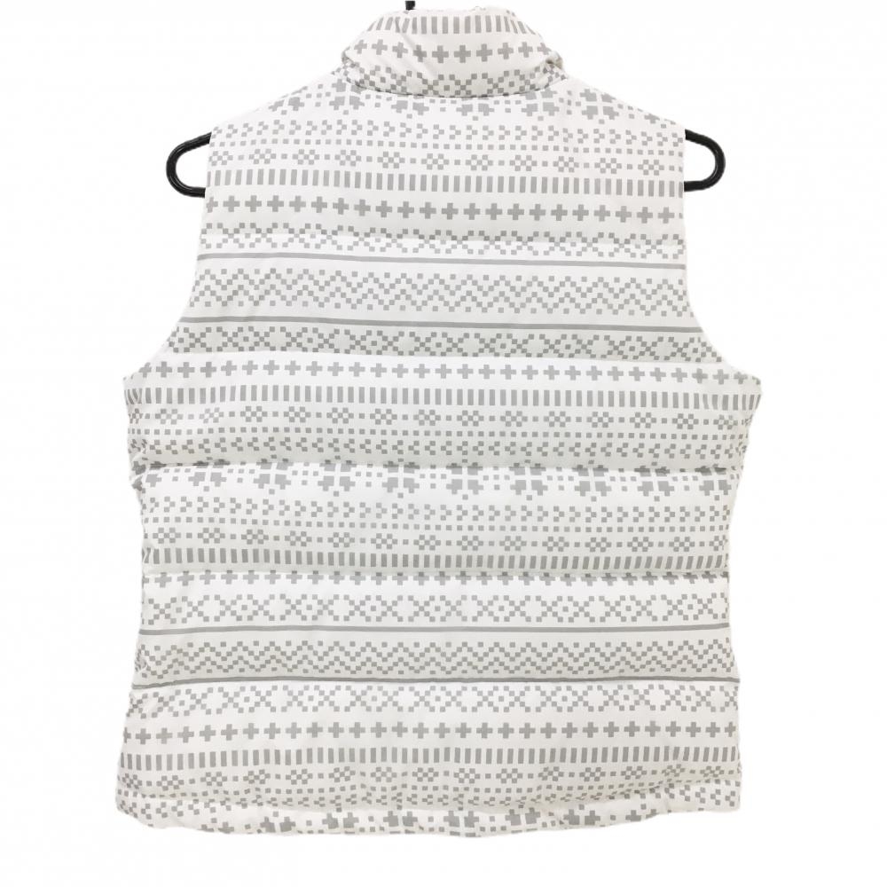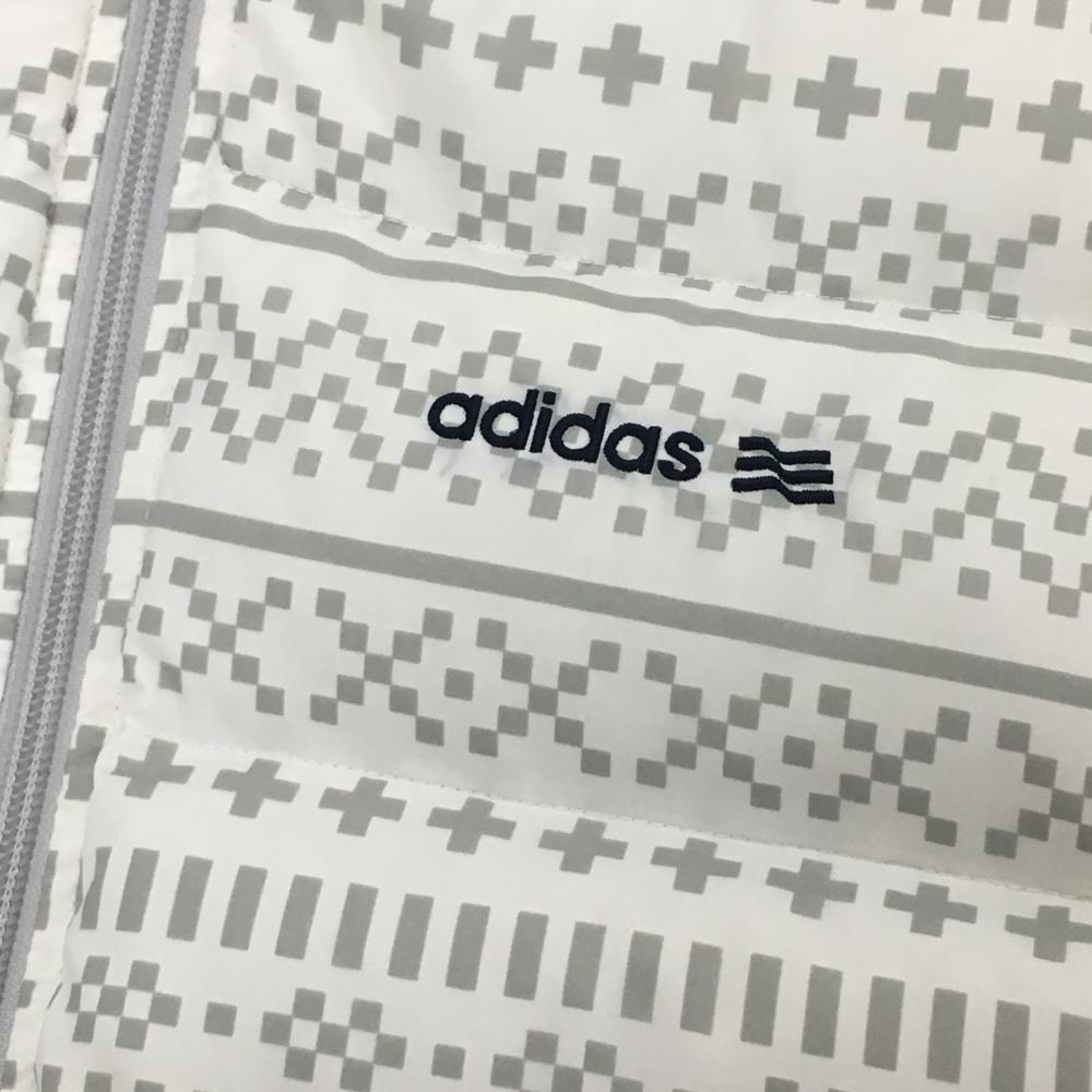 アディダス ダウンベスト 白×グレー 総柄 胸ロゴ ネック裏起毛 レディース M ゴルフウェア adidas