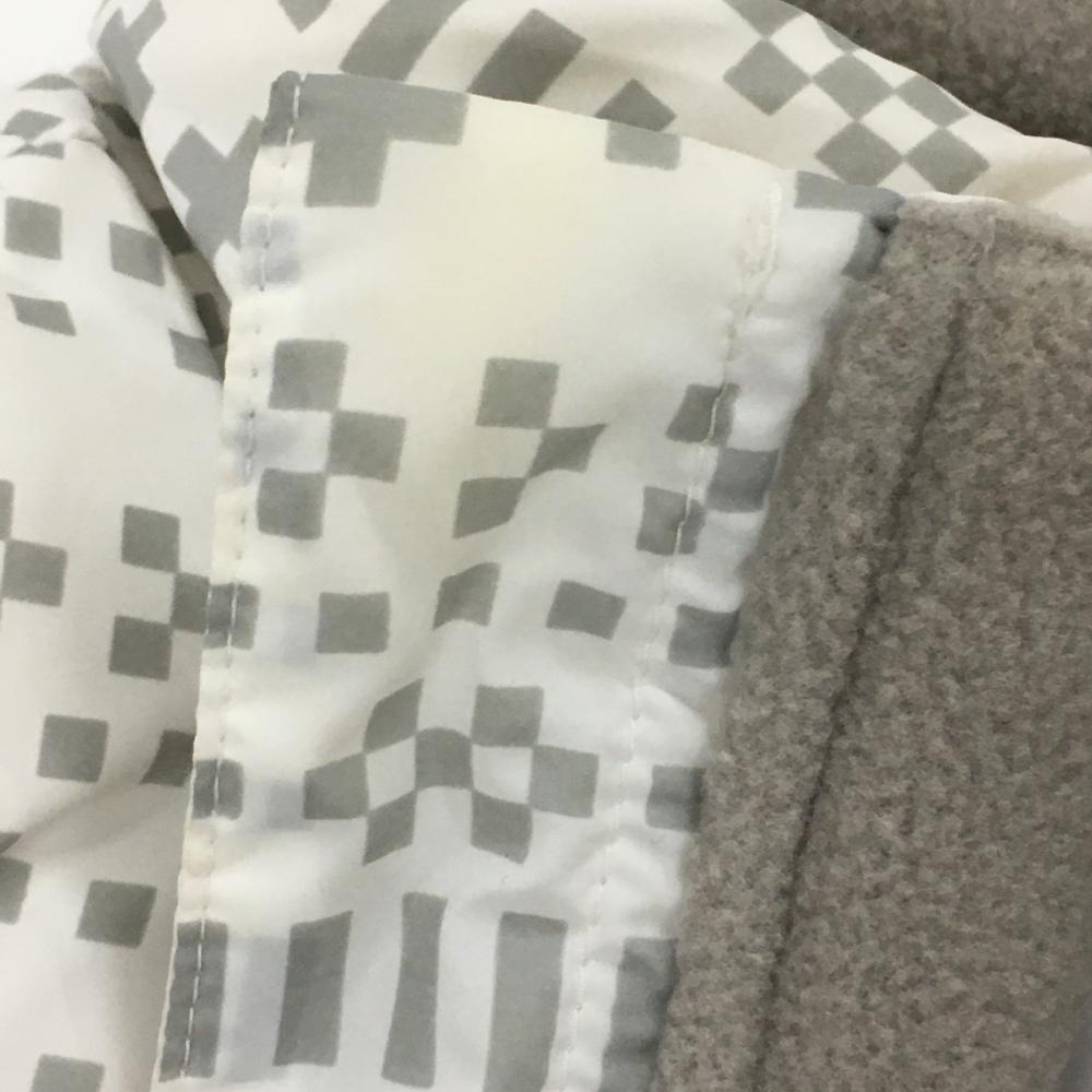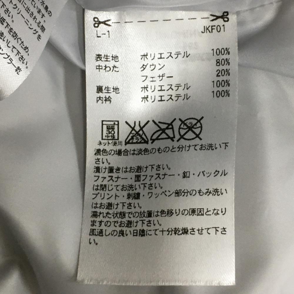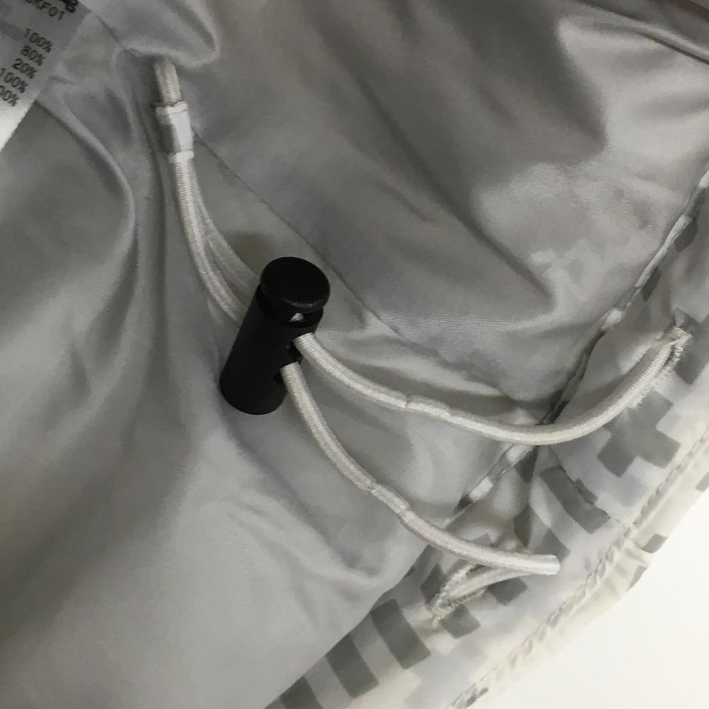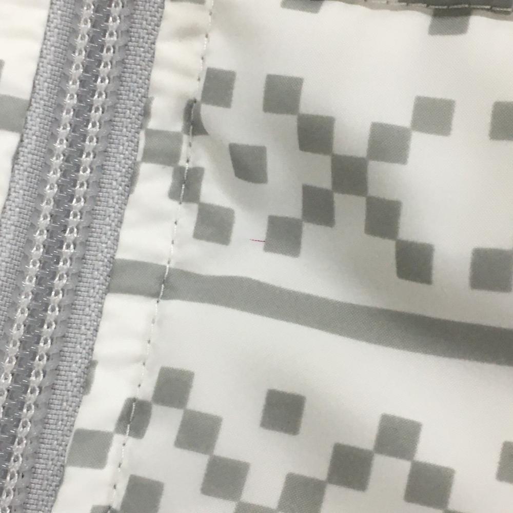 アディダス ダウンベスト 白×グレー 総柄 胸ロゴ ネック裏起毛 レディース M ゴルフウェア adidas