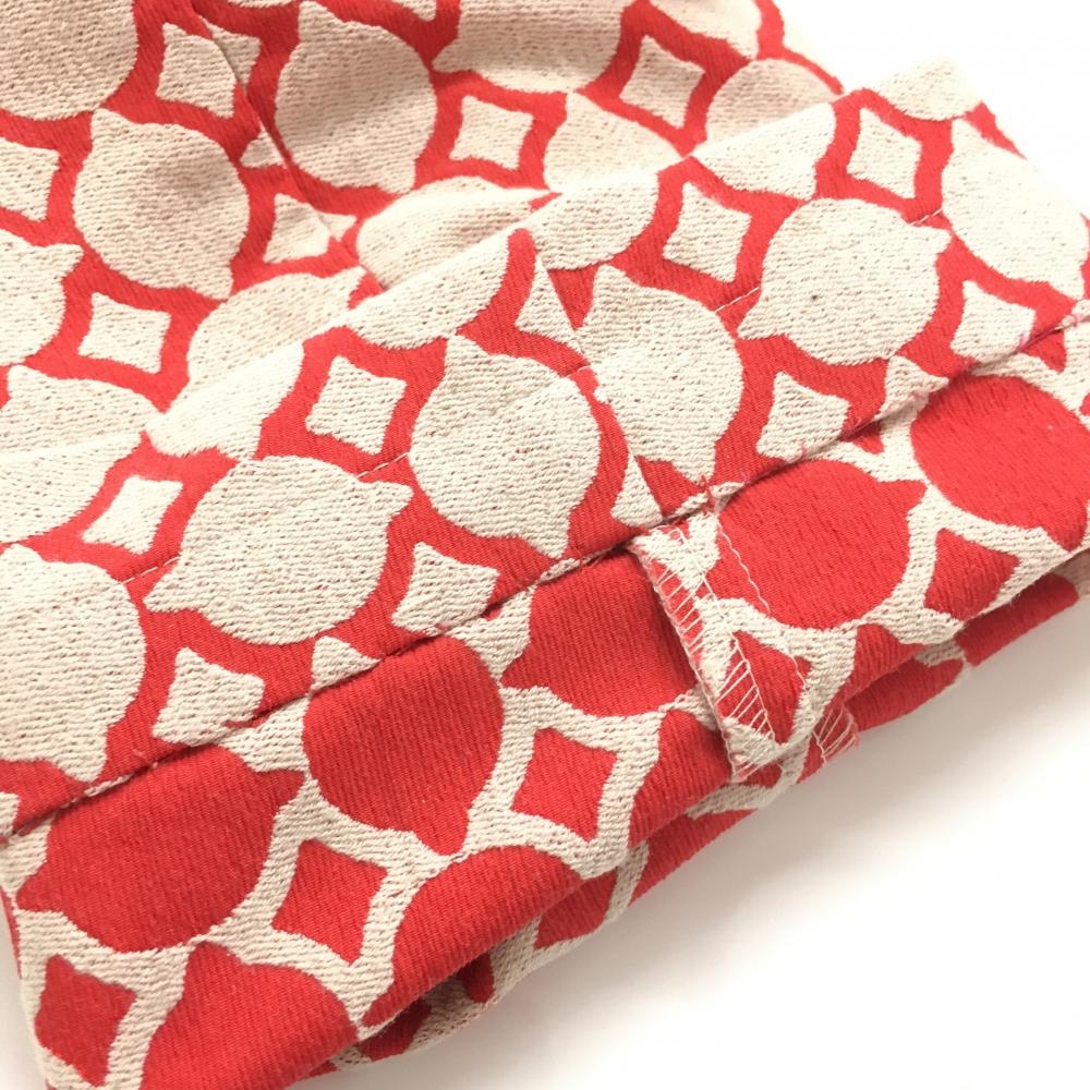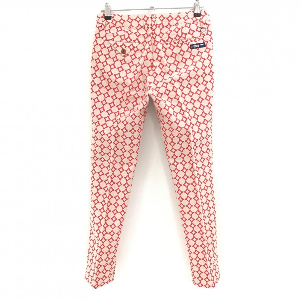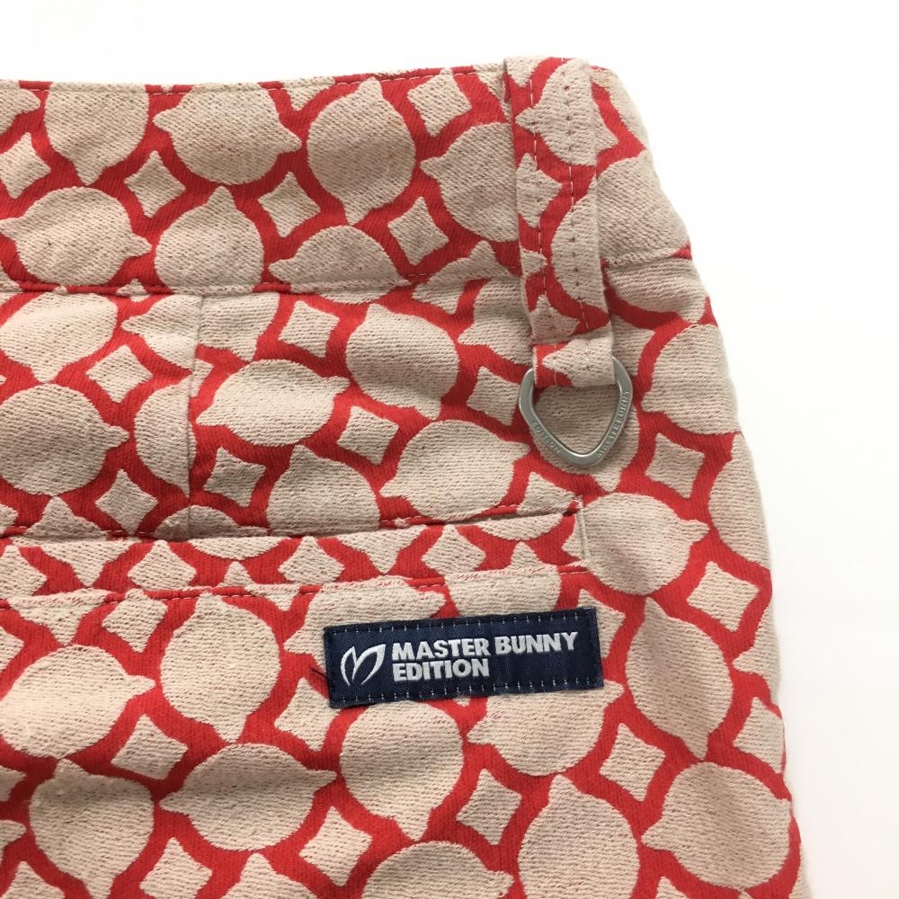【美品】マスターバニー パンツ レッド×ベージュ 総柄 ストレッチ レディース 2(L) ゴルフウェア MASTER BUNNY EDITION