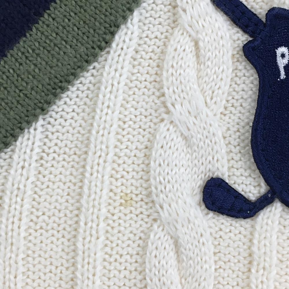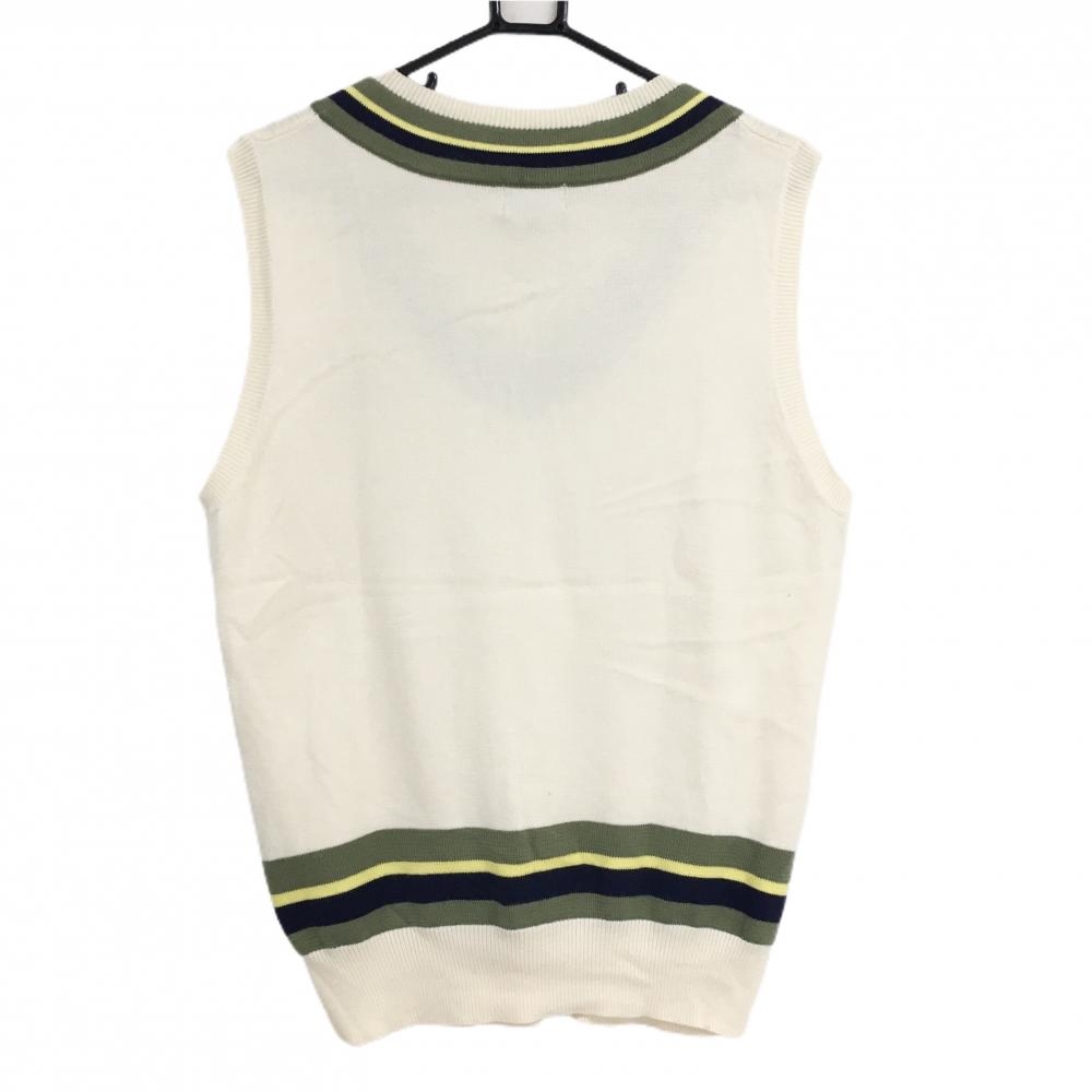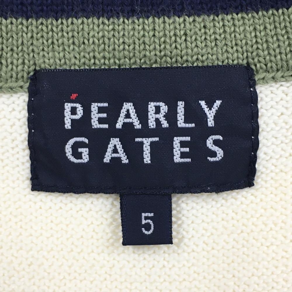 パーリーゲイツ ニットベスト アイボリー×カーキ 前面ケーブル編み コットン100% Vネック メンズ 5(L) ゴルフウェア PEARLY GATES