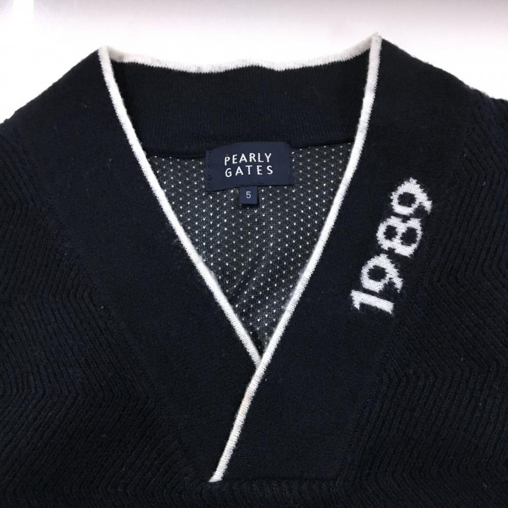 パーリーゲイツ ニットベスト ネイビー×白 フロントロゴ 裏地付 蓄熱 メンズ 5(L) ゴルフウェア 2024年モデル PEARLY GATES