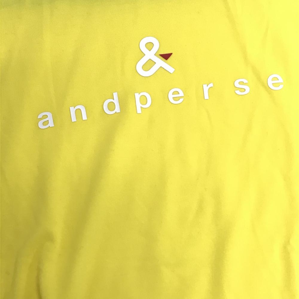 【美品】アンパスィ ハイネックインナーシャツ イエロー×黒 サイド微起毛 ロゴ白 サイド繊維付着 レディース M ゴルフウェア and per se
