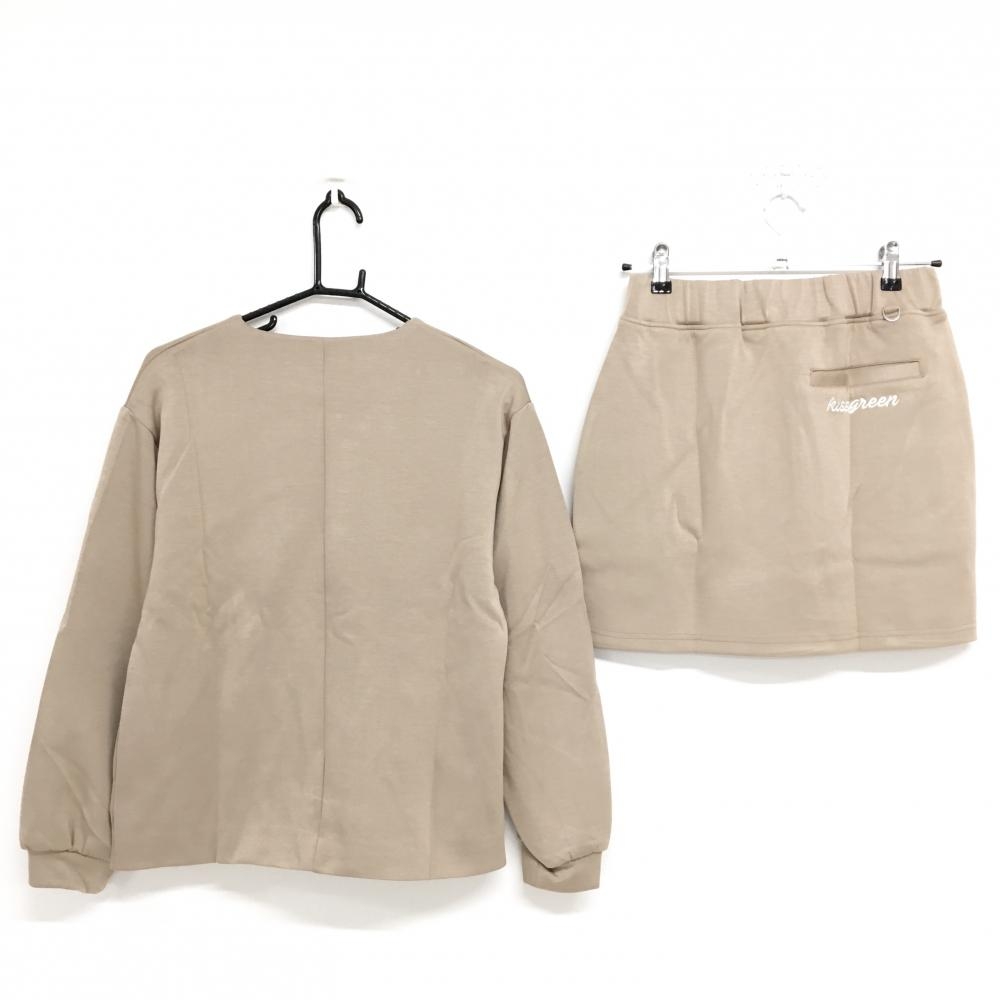 【新品】キスオンザグリーン 上下セット(ノーカラージャケット×スカート) ベージュ レディース 2(M) ゴルフウェア kiss on the green