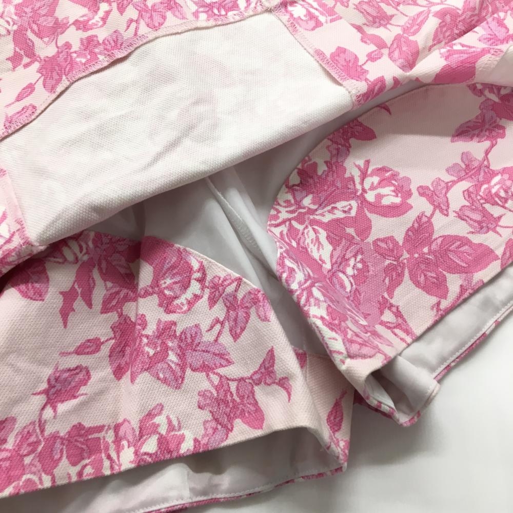 【超美品】キャロウェイ スカート ピンク×白 バラ柄 ストレッチ 内側インナーパンツ レディース L ゴルフウェア Callaway