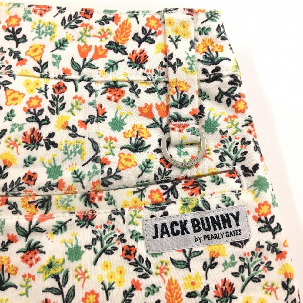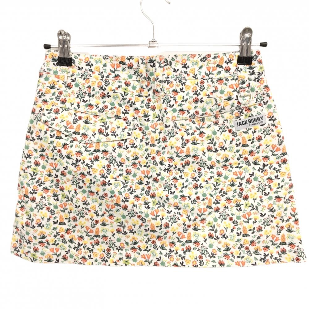 ジャックバニー スカート 白×オレンジ 花総柄 内側インナーパンツ レディース 0(S) ゴルフウェア Jack Bunny