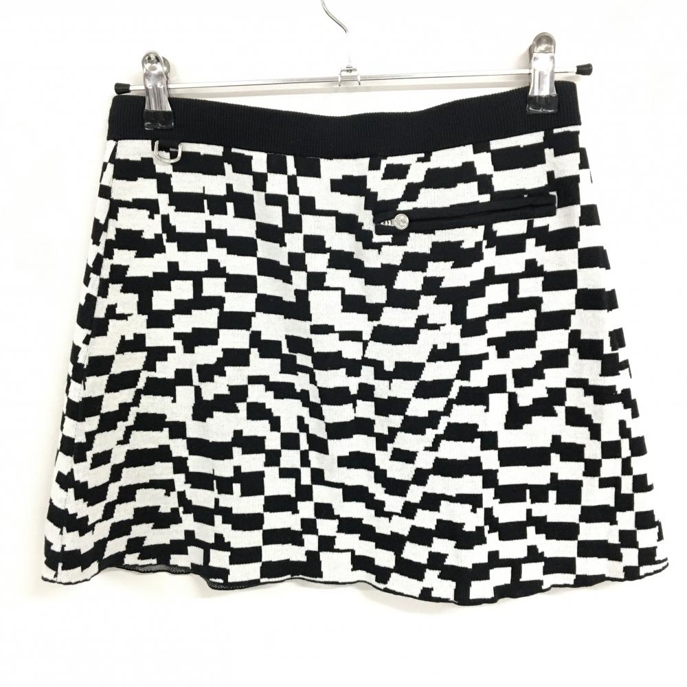 【超美品】デサントゴルフ ニットスカート 黒×白 総柄 コットン100% 中田英寿 レディース L ゴルフウェア DESCENTE