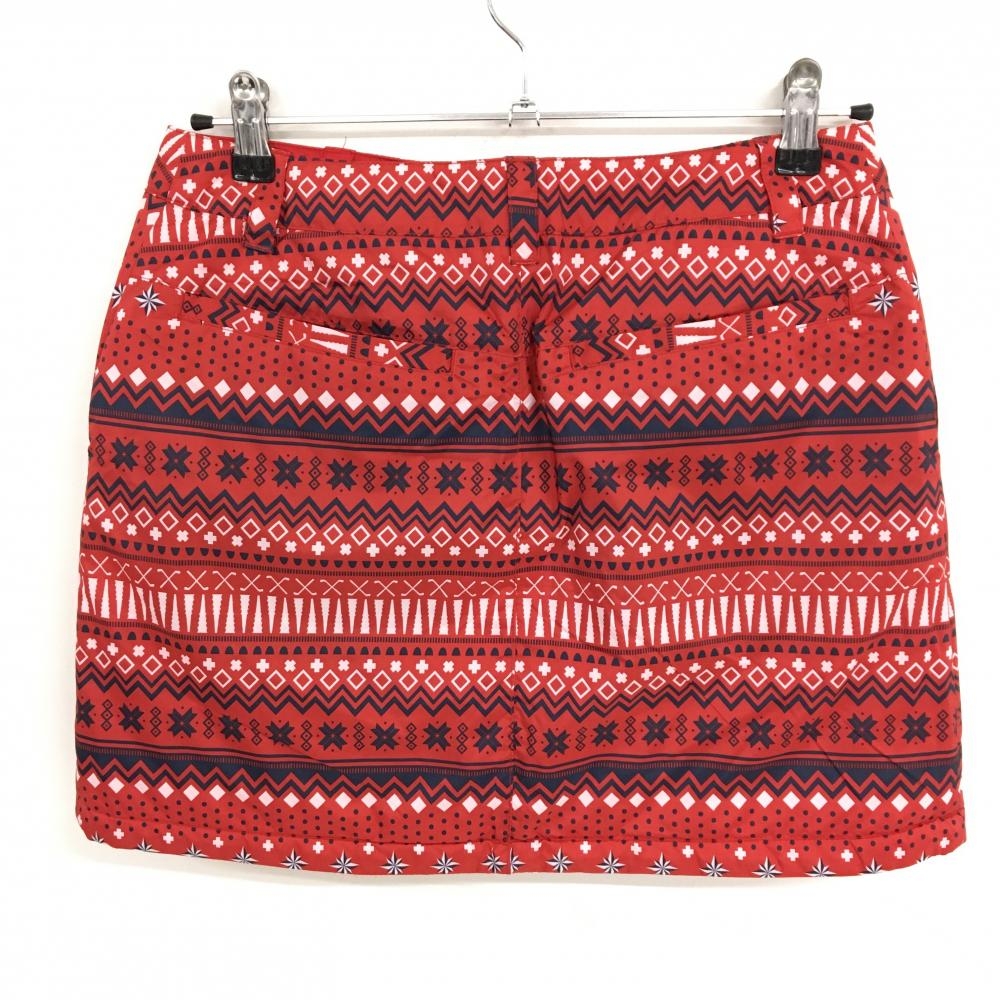 【美品】カッパ 中綿リバーシブルスカート レッド×ネイビー 総柄 裏無地 ロゴ刺しゅう レディース L ゴルフウェア Kappa