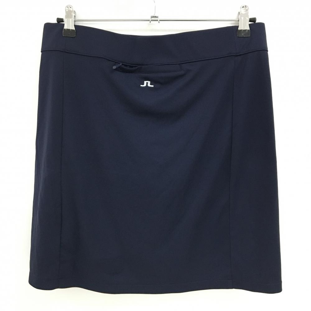 【美品】ジェイリンドバーグ スカート ネイビー ストレッチ ロゴ刺しゅう スリット レディース L ゴルフウェア J.LINDEBERG