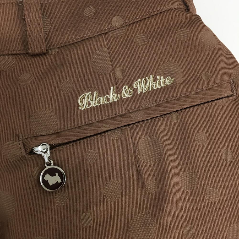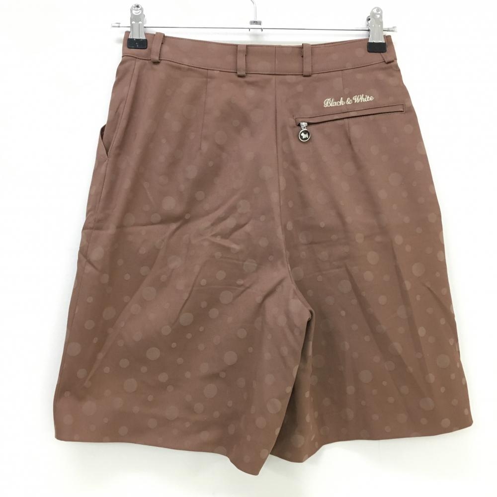 【超美品】ブラックアンドホワイト キュロットスカート ブラウン ドット柄 バックロゴ レディース M ゴルフウェア Black&White