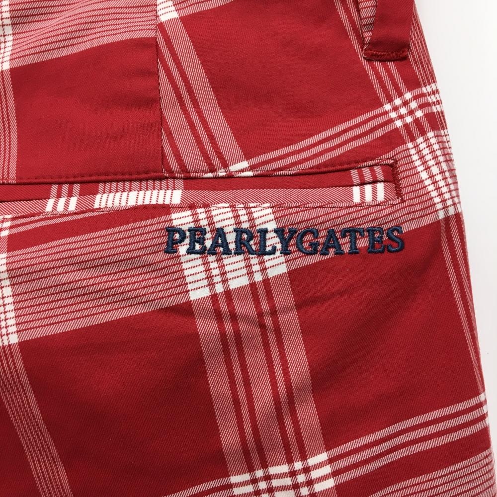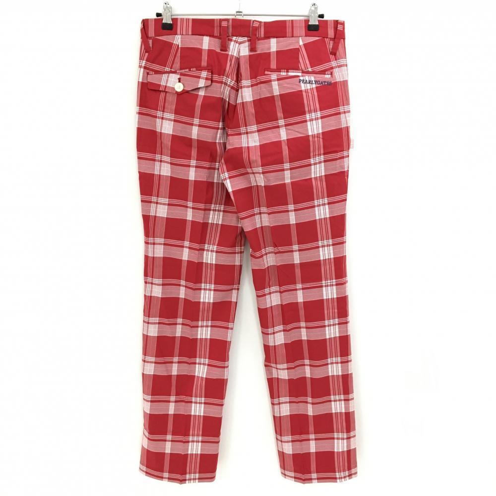 【美品】パーリーゲイツ パンツ レッド×白 チェック ストレッチ メンズ 5(L) ゴルフウェア PEARLY GATES