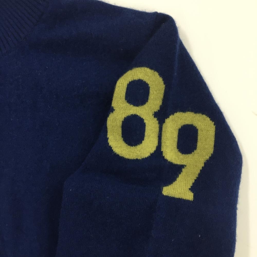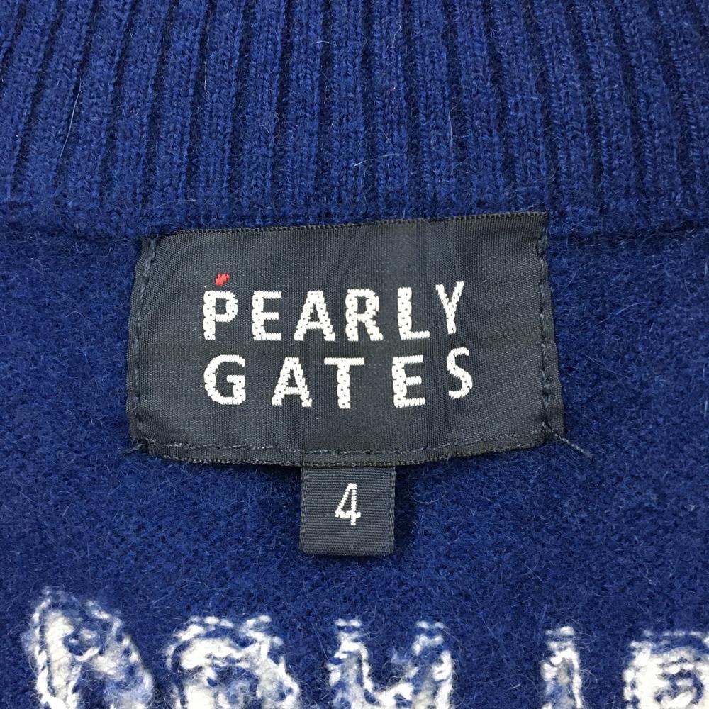 【美品】パーリーゲイツ ニットジャケット ネイビー系×白 袖一部ボーダー カシミヤ100% メンズ 4(M) ゴルフウェア PEARLY GATES