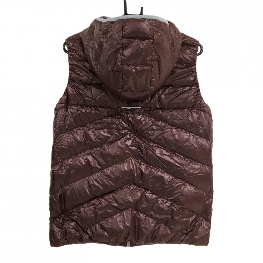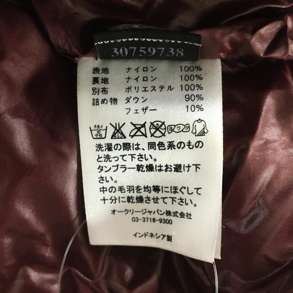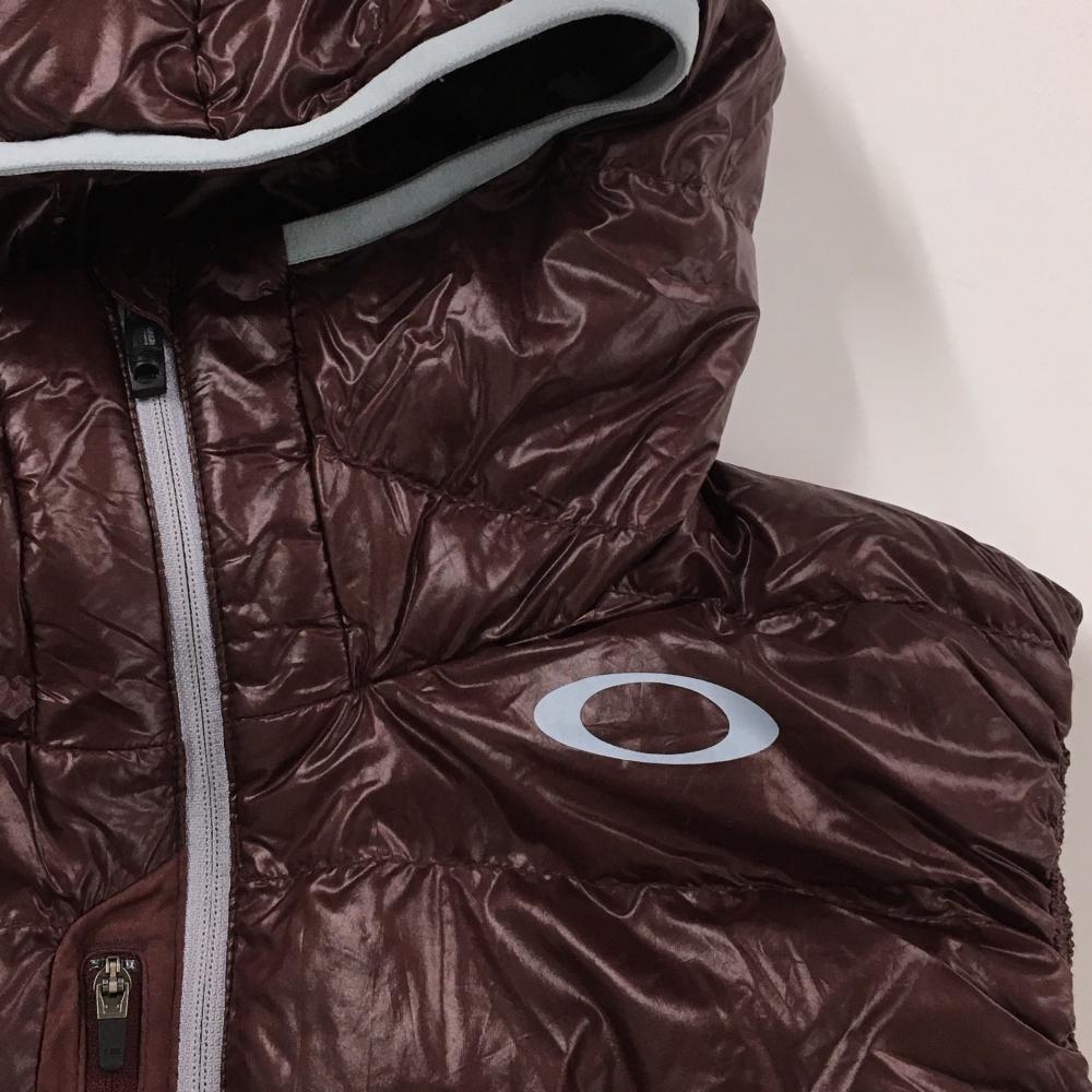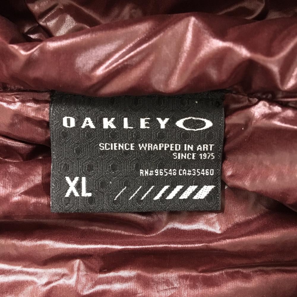 【超美品】オークリー フード付ダウンベスト ボルドー×ライトブルー 胸ポケット ダウン90% メンズ XL ゴルフウェア Oakley