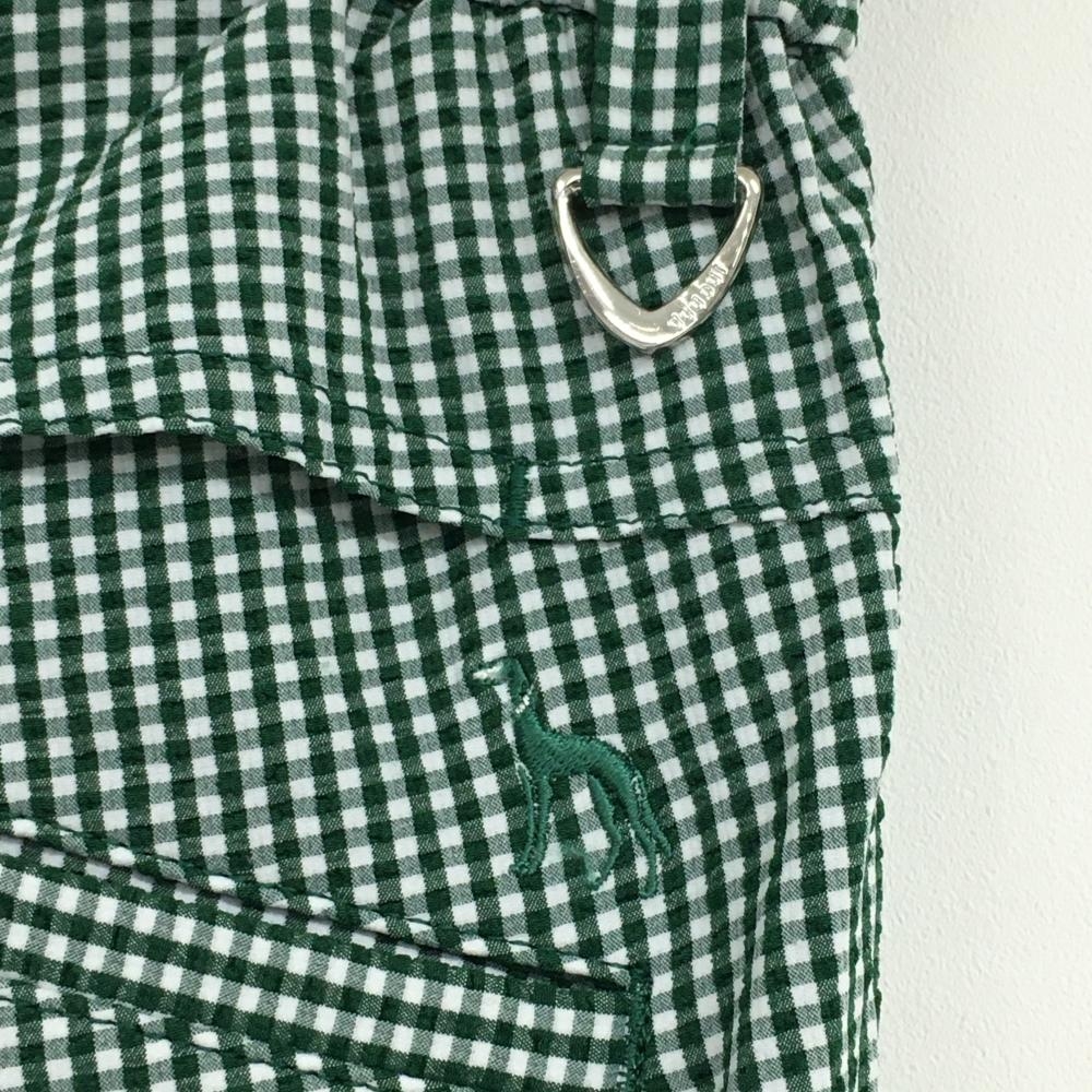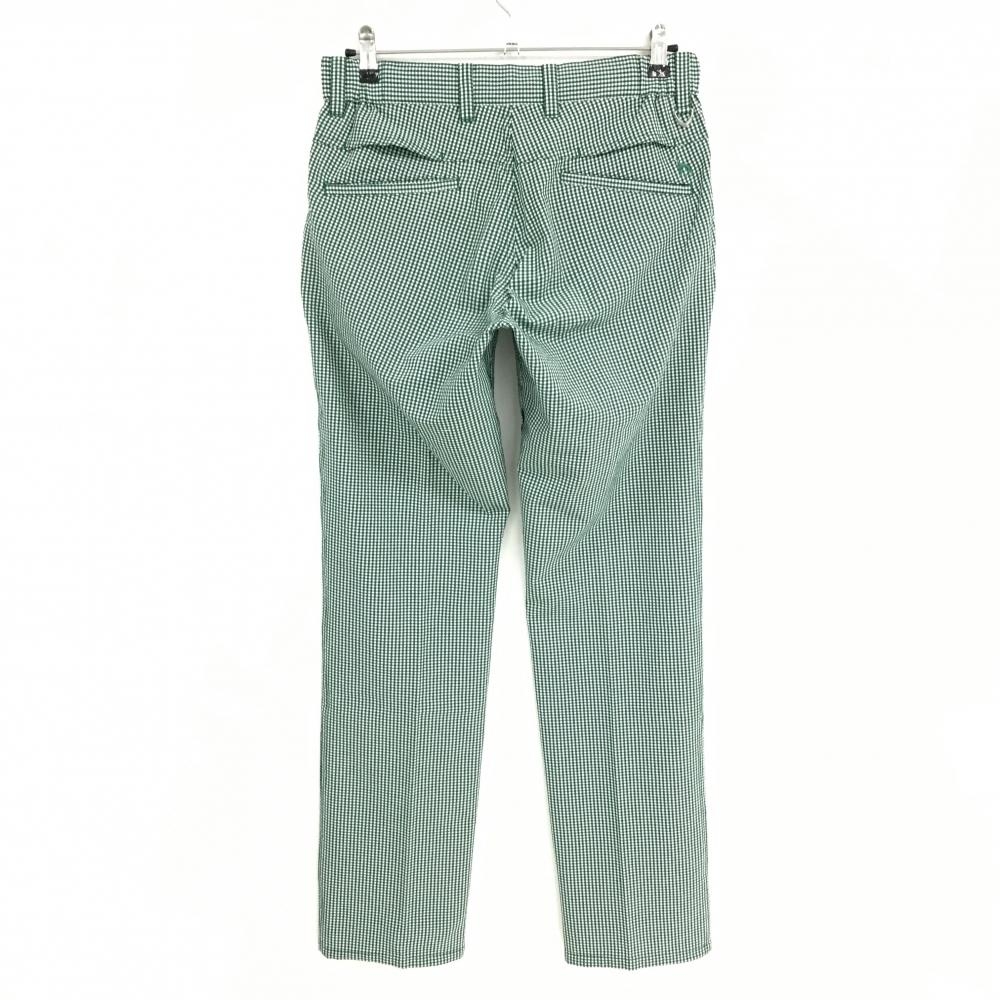 【超美品】アダバット パンツ 白×グリーン チェック柄 サッカー生地 バックロゴ メンズ 46(M) ゴルフウェア adabat