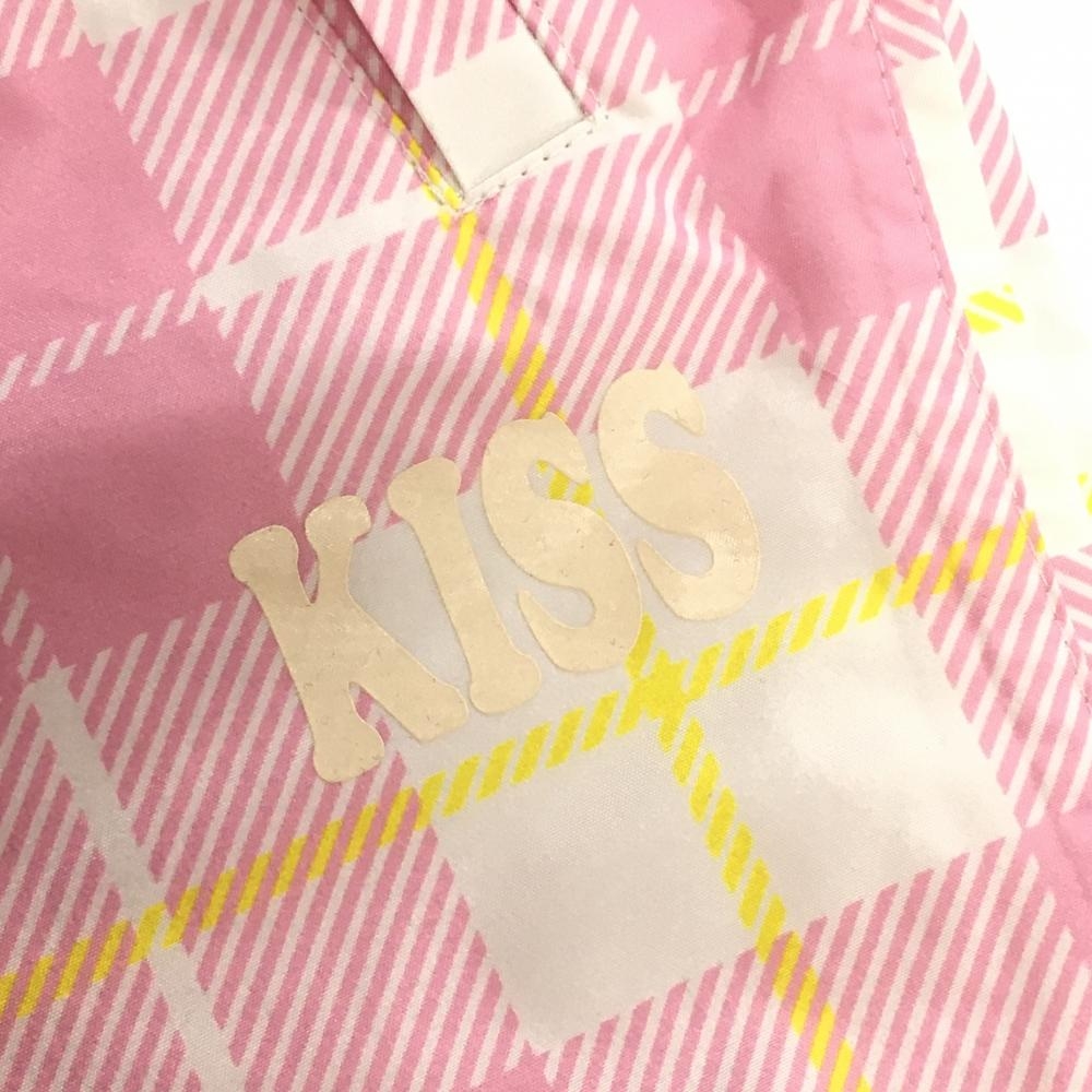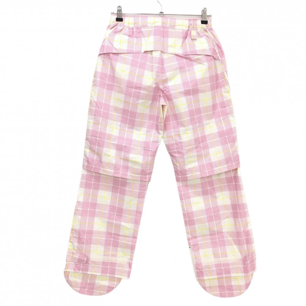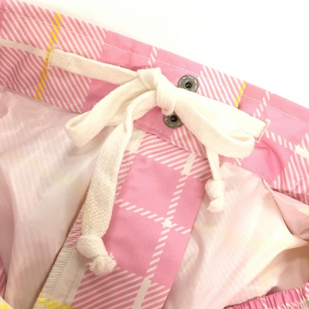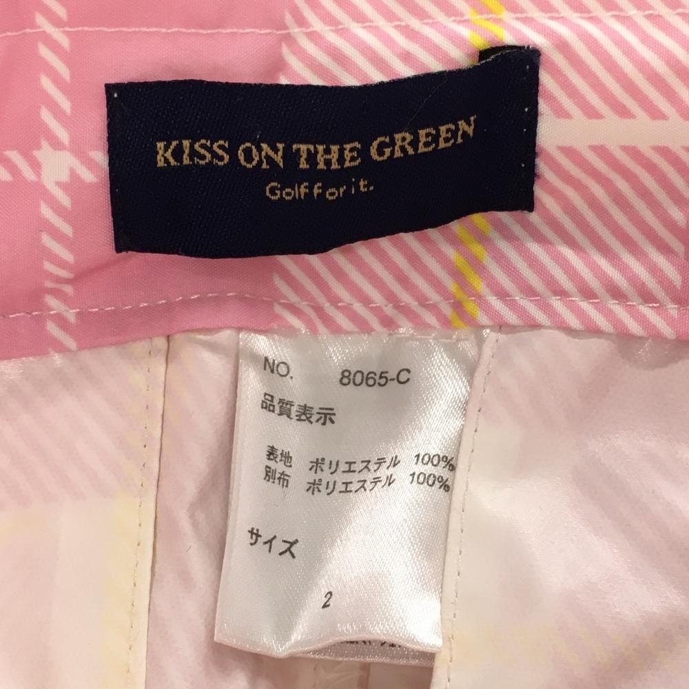 【超美品】キスオンザグリーン レインパンツ ピンク×白 チェック ウエスト一部ゴム レディース 2(M) ゴルフウェア kiss on the green