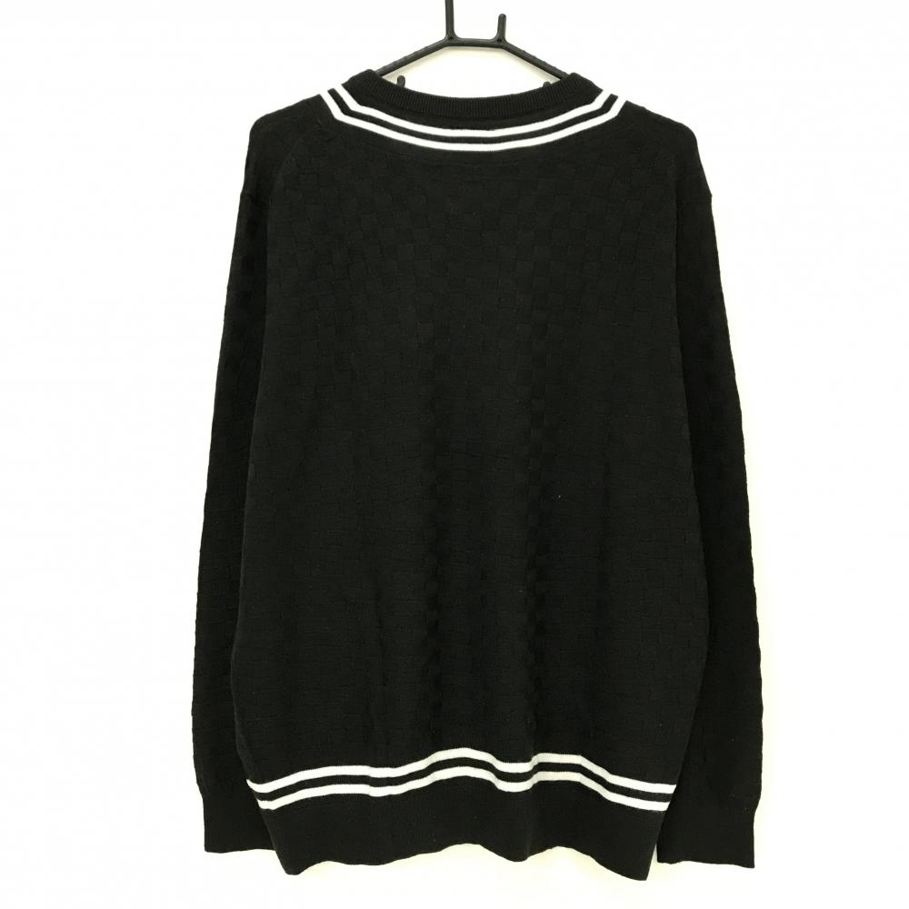 アドミラル セーター 黒 格子柄織生地 ロゴ白 ウール混 ニット メンズ XL ゴルフウェア Admiral
