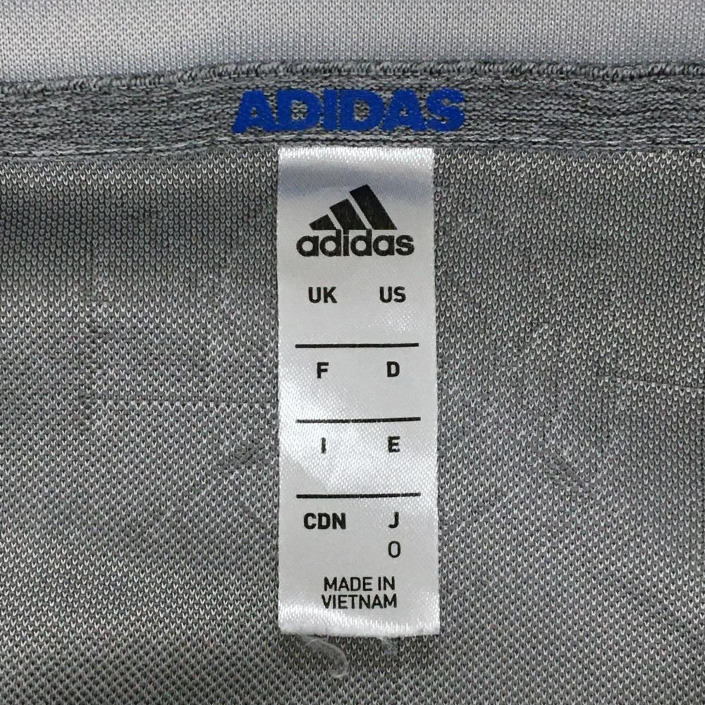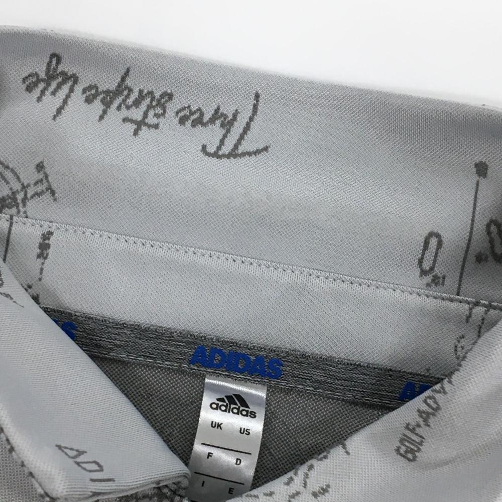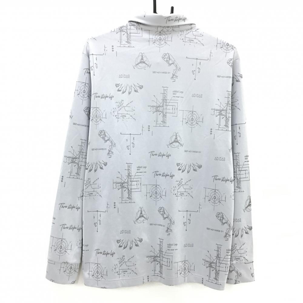【美品】アディダス 長袖ポロシャツ ライトグレー×グレー 総柄 胸ロゴ 襟下スナップボタン メンズ O ゴルフウェア adidas