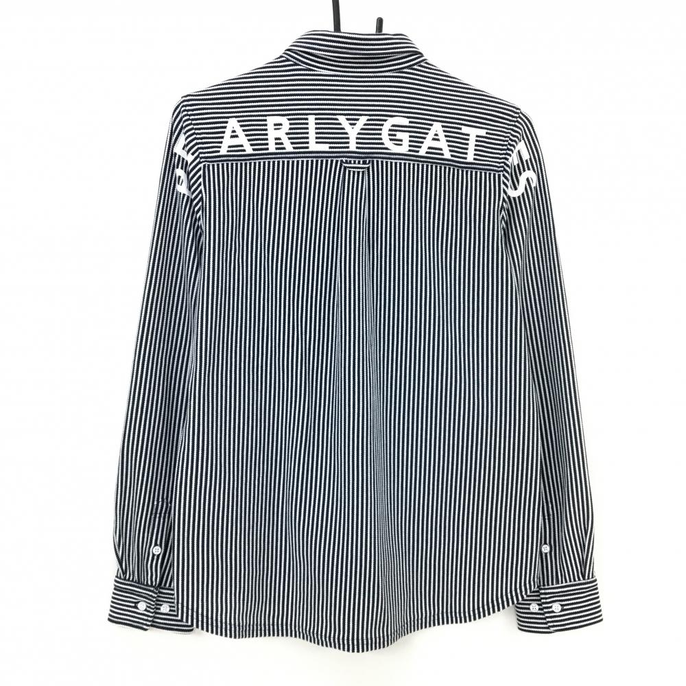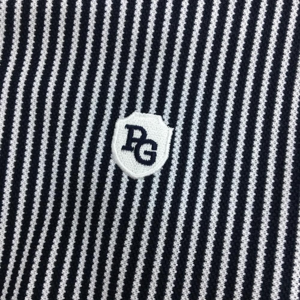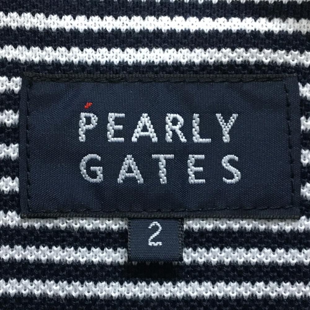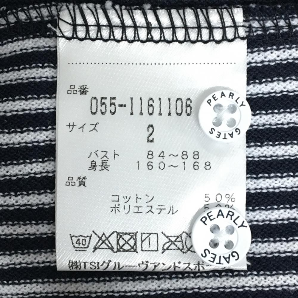 【超美品】パーリーゲイツ 長袖ポロシャツ ネイビー×白 ストライプ ボタンダウン レディース 2(L) ゴルフウェア PEARLY GATES
