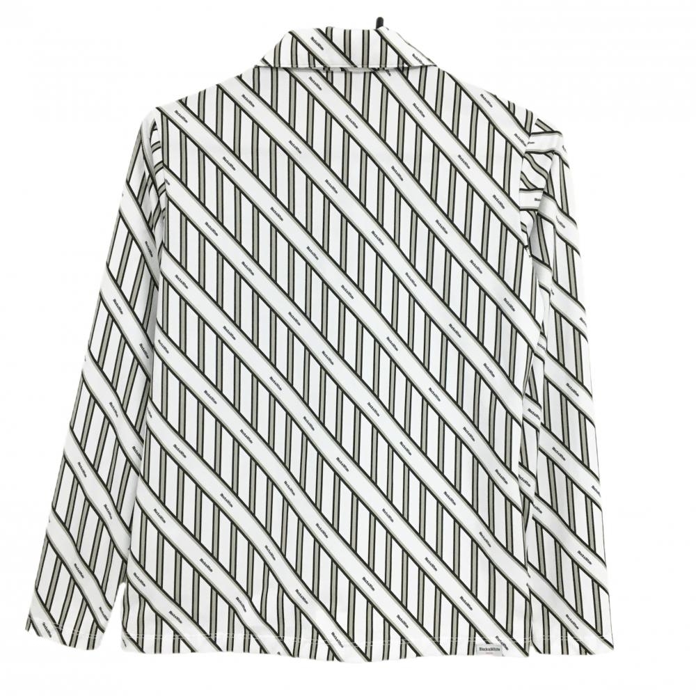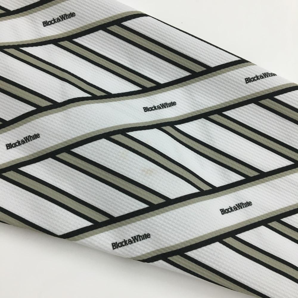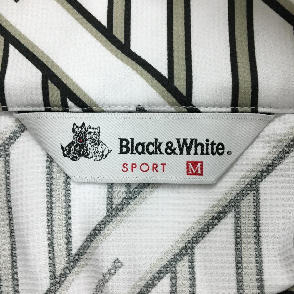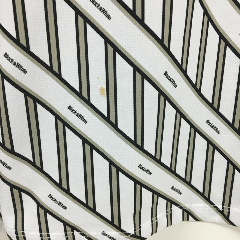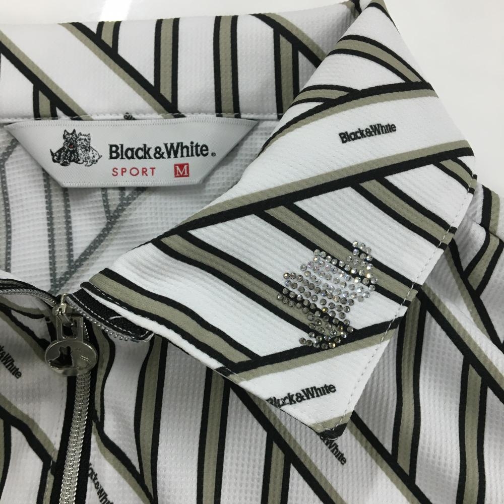ブラックアンドホワイト 長袖ポロシャツ 白×グレー×黒 ストライプ ハーフジップ 斜めライン レディース M ゴルフウェア Black&White