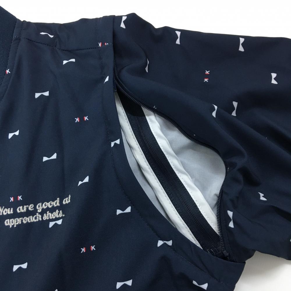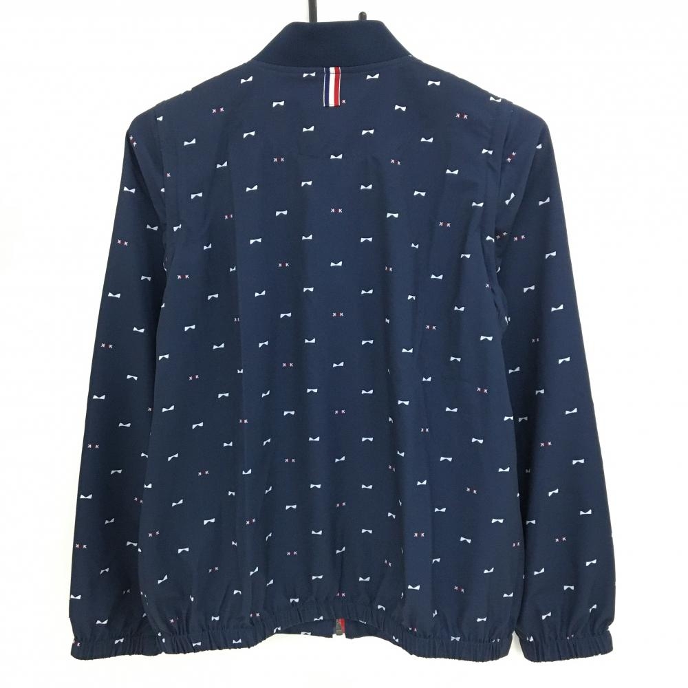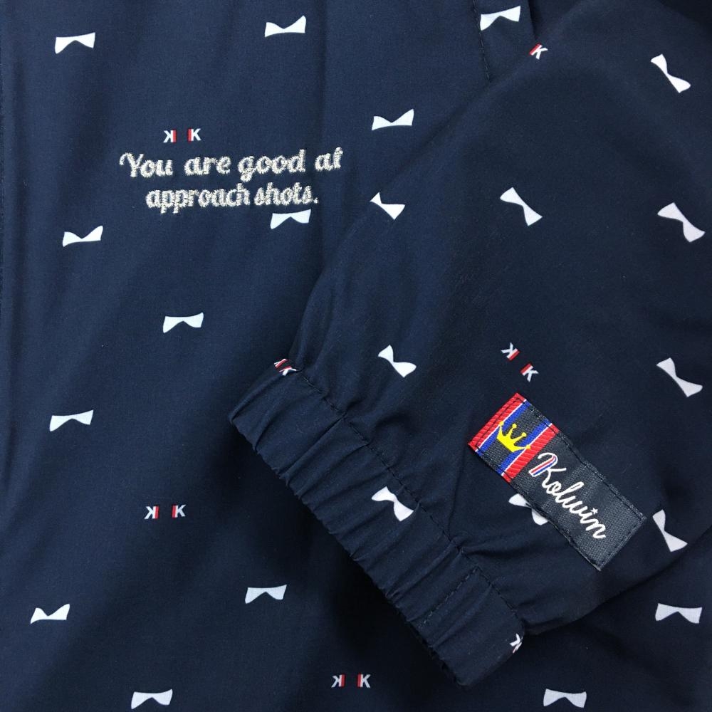 【超美品】コルウィン 2WAYジャケット ネイビー×白 総柄 袖着脱可 胸ロゴ刺しゅう レディース L ゴルフウェア Kolwin