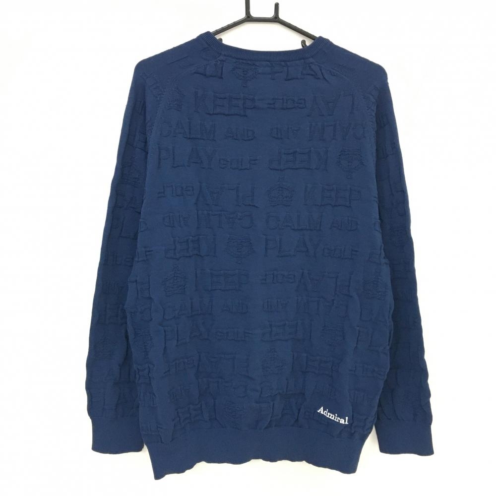 アドミラル セーター ネイビー 総柄織生地 ロゴ白 Vネック ニット メンズ LL ゴルフウェア Admiral