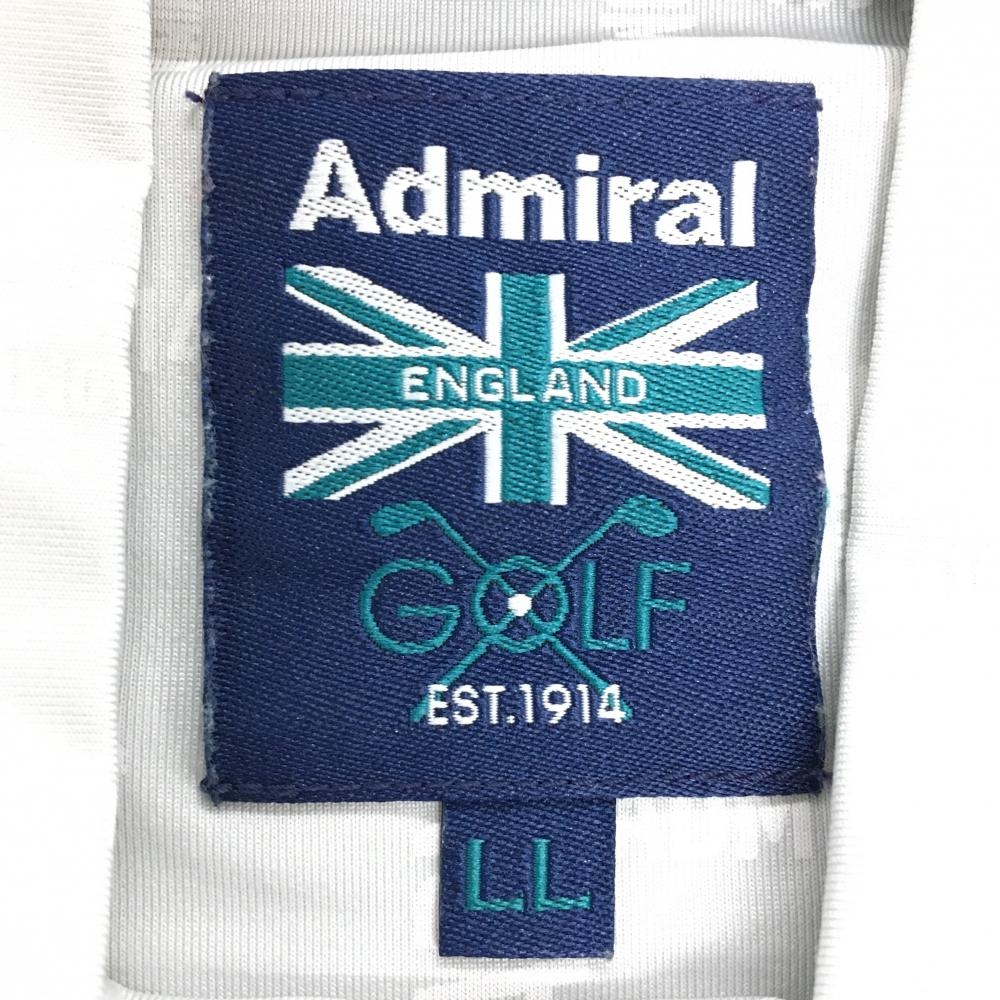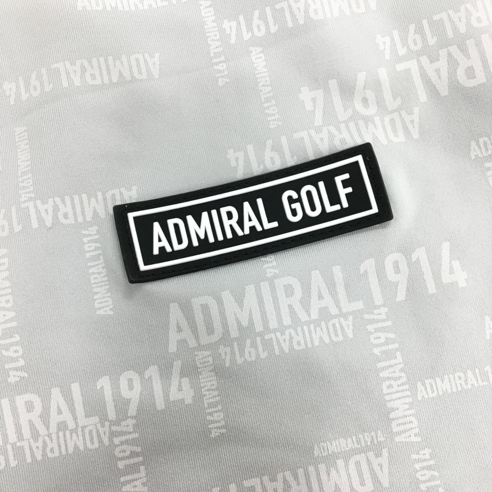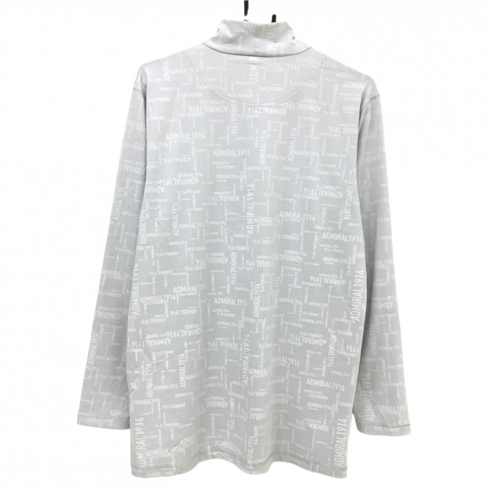 【美品】アドミラル 長袖ハイネックシャツ グレー×白 ロゴ総柄 シリコンワッペン メンズ LL ゴルフウェア Admiral