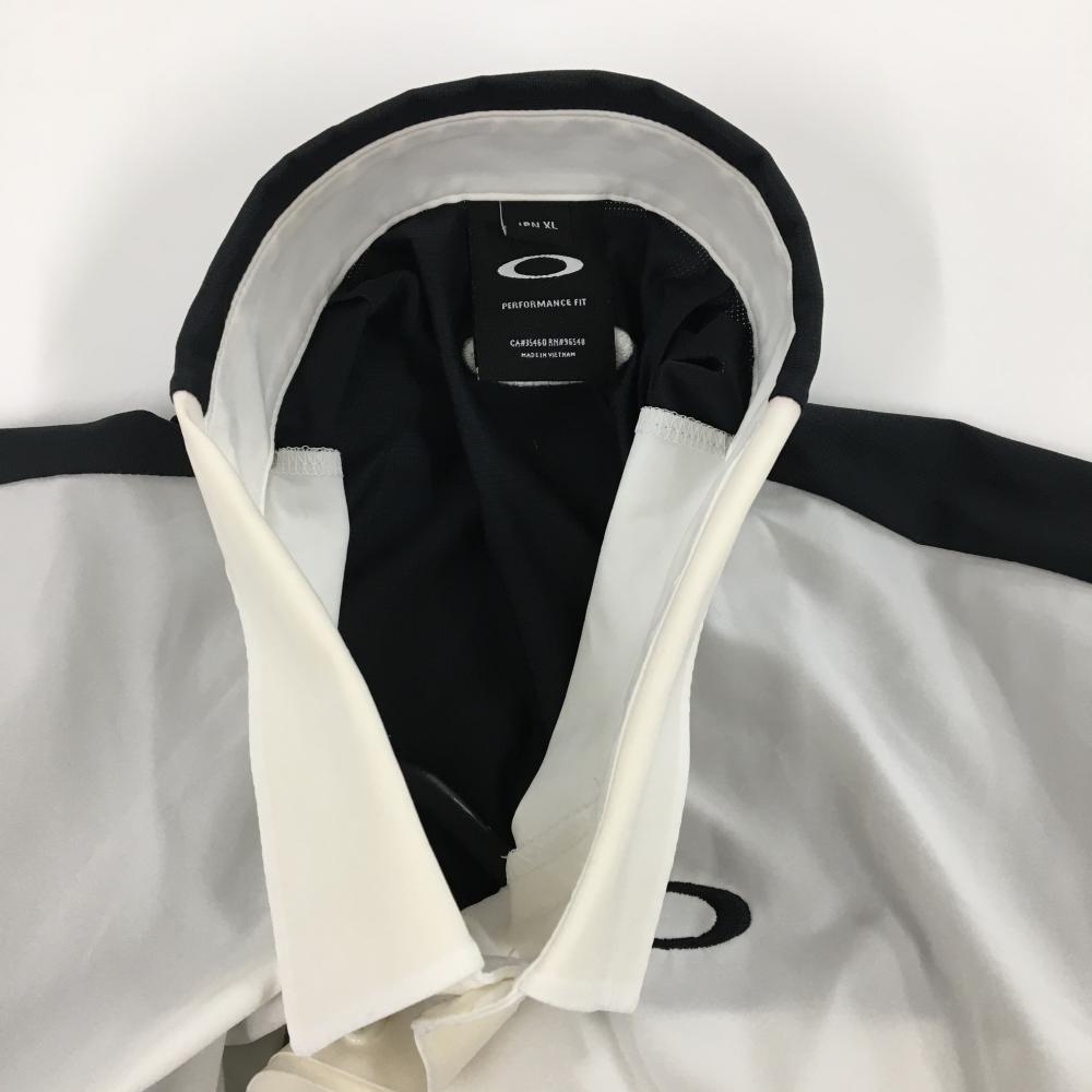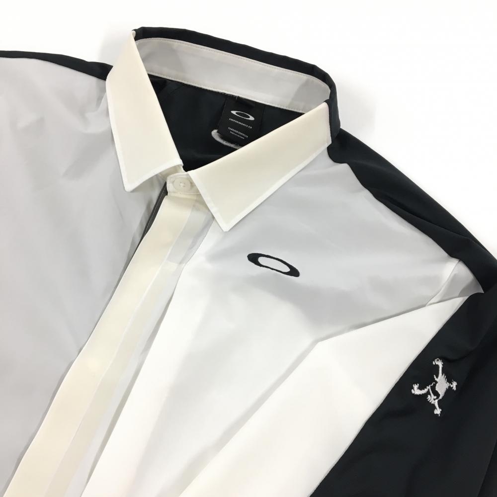 オークリー 長袖シャツ 白×黒 袖スカル刺しゅう スナップボタン メンズ XL ゴルフウェア Oakley