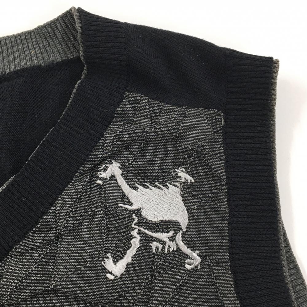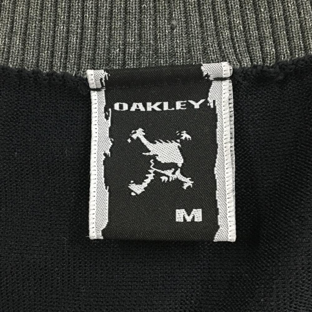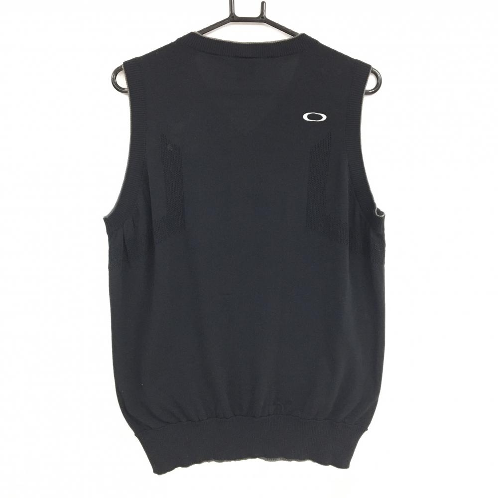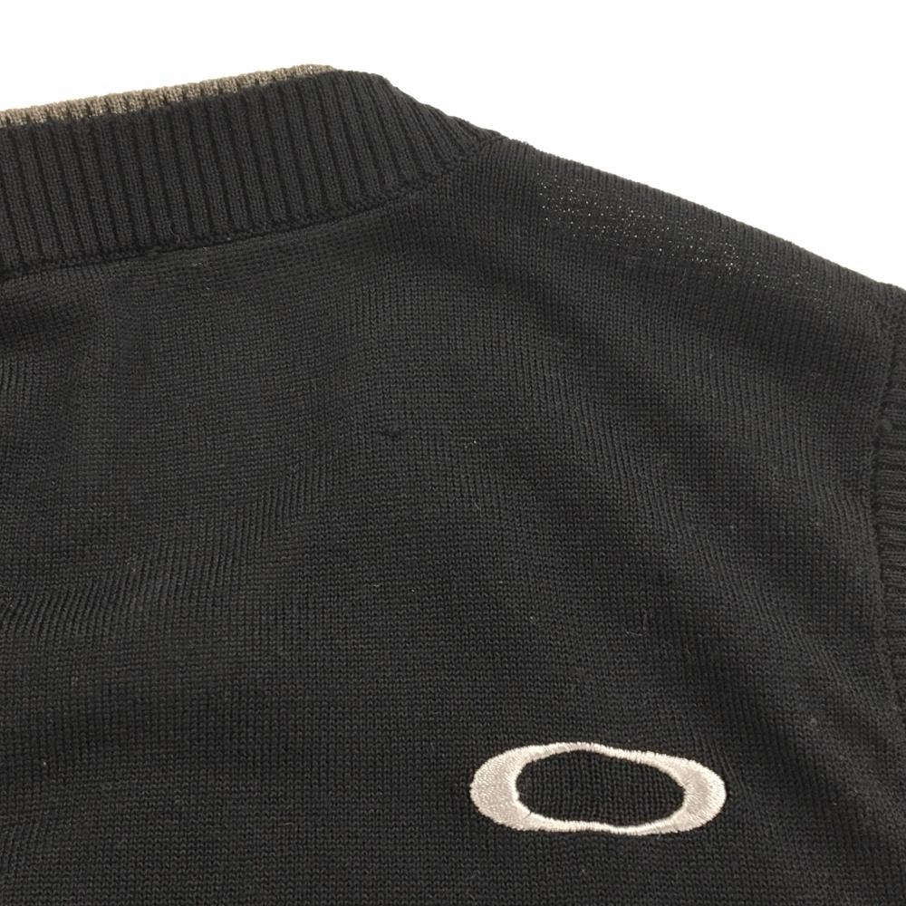 オークリー ニットベスト グレー×黒 前身頃凹凸編み Vネック メンズ M ゴルフウェア Oakley