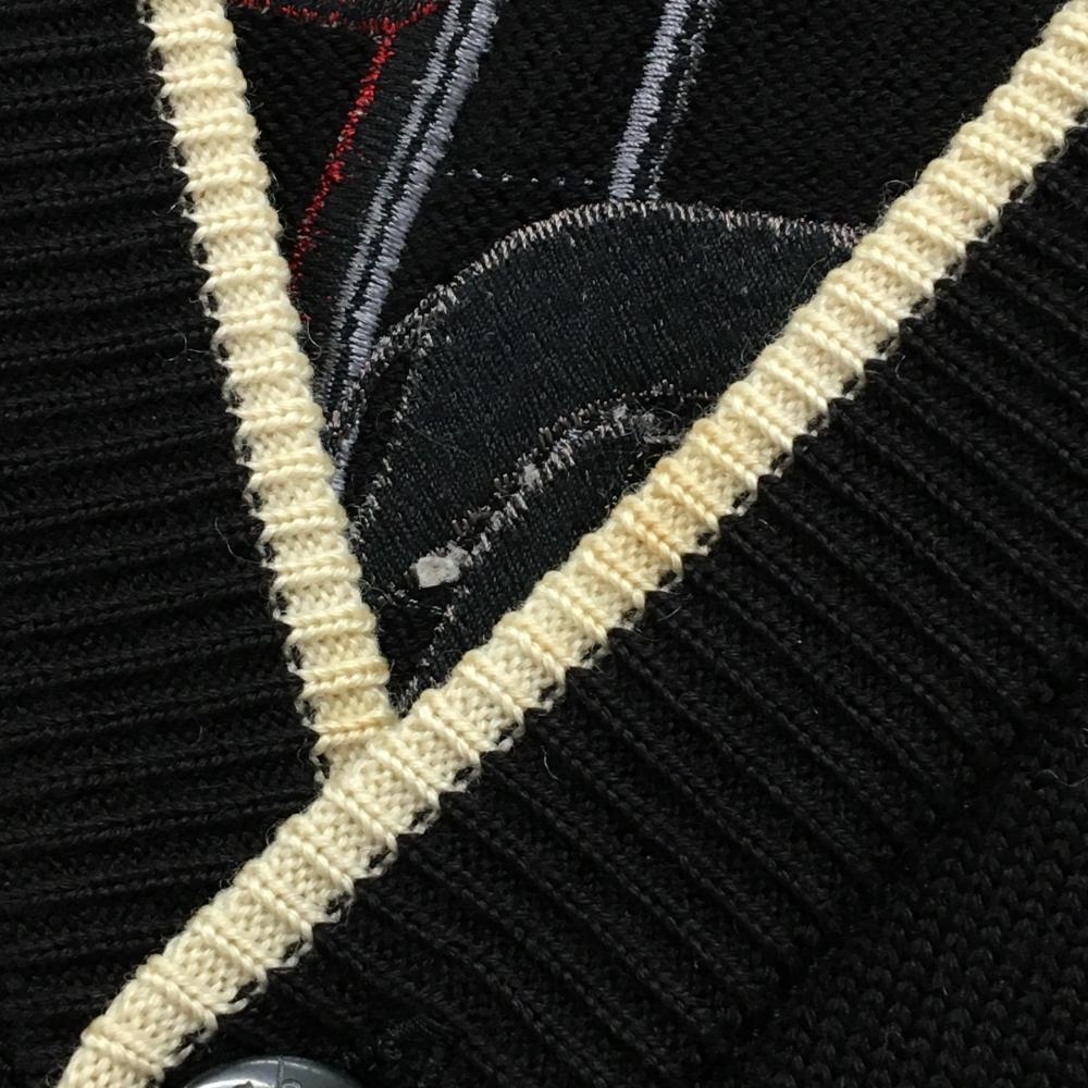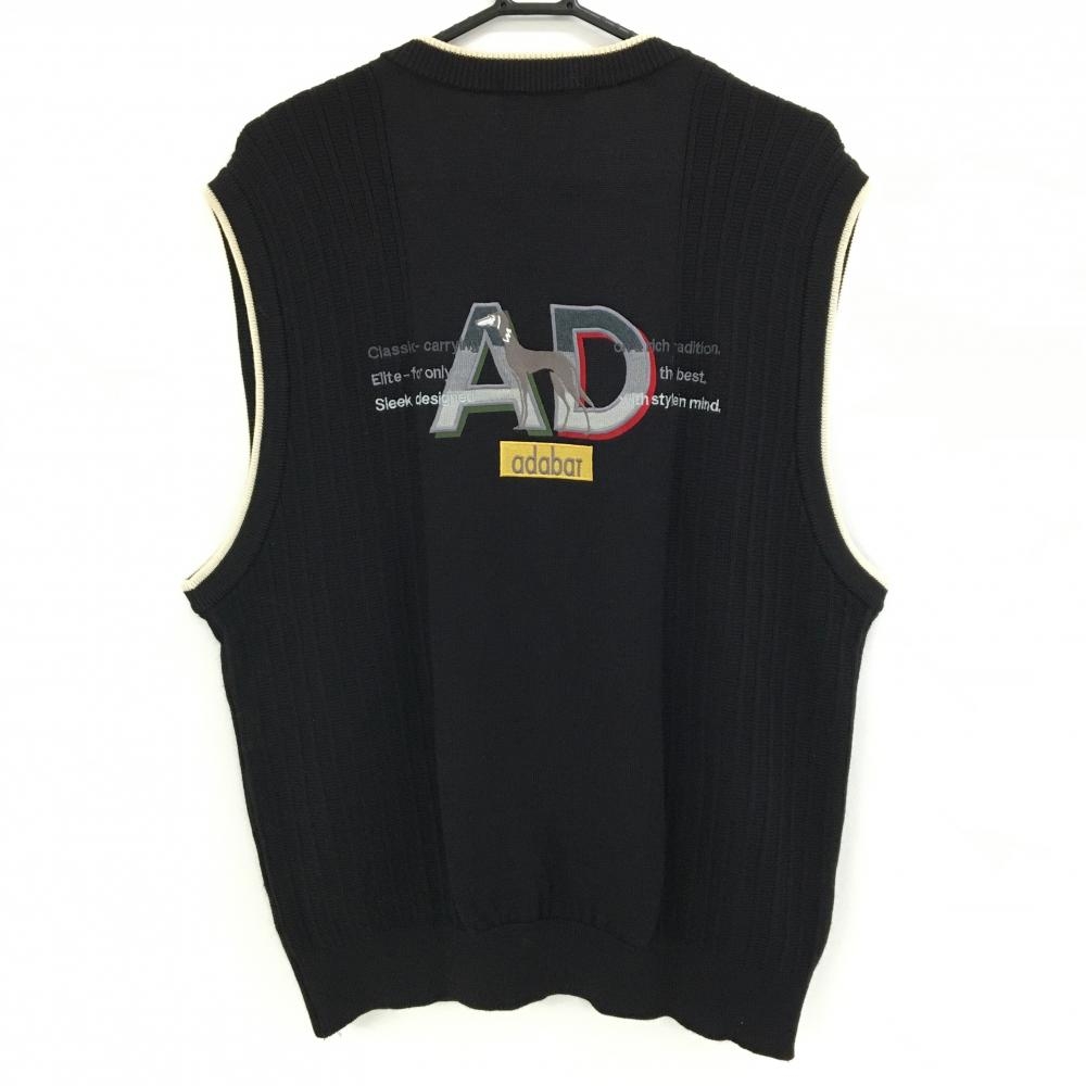 アダバット アウターニットベスト 黒×ベージュ 背ビッグロゴ メンズ V(XL) ゴルフウェア adabat