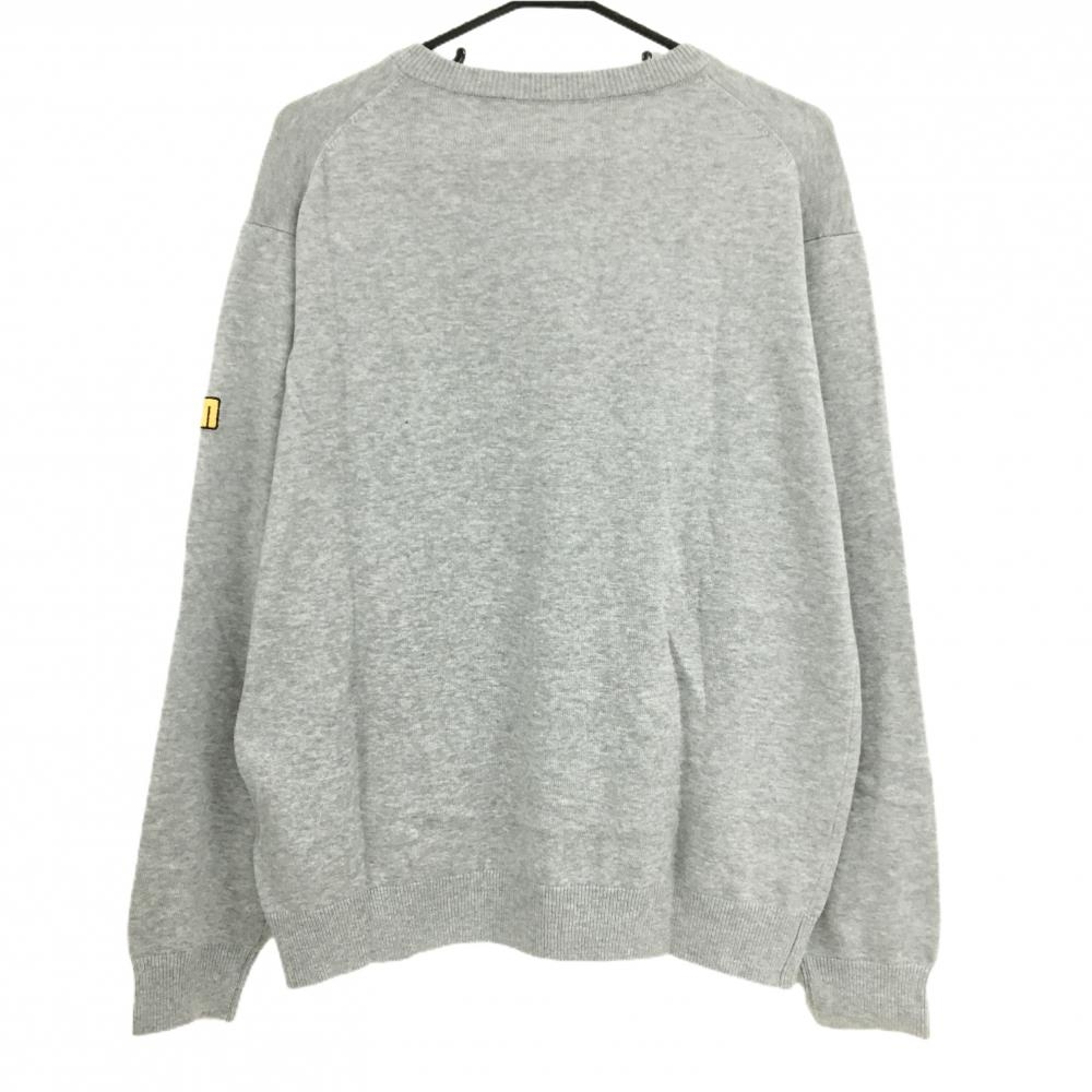 【超美品】ラウドマウス セーター グレー 袖ロゴワッペン Vネック コットン混 ニット メンズ LL ゴルフウェア LOUDMOUTH